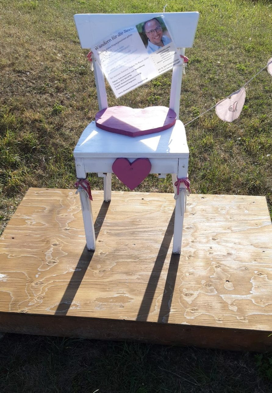 13 verschiedenen Stühle luden dazu ein, innezuhalten und die Seele baumeln zu lassen. Verschiedene Texte und Impulse an den Stühlen aber auch unterwegs trugen dazu bei. Mit einem Abendessen beim Italiener klang die Wanderung aus.