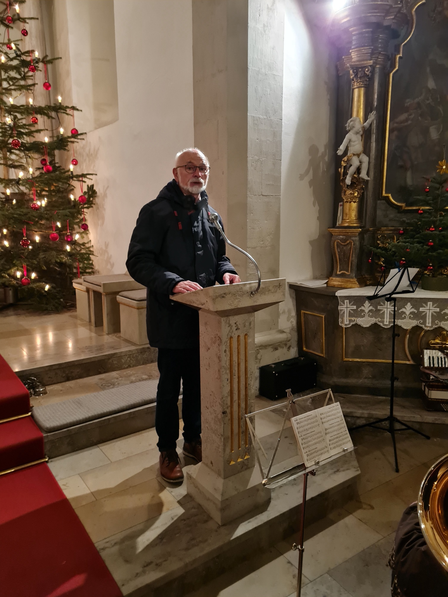 In seiner Begrüßung brachte Kirchenpfleger Udo Molitor seine Freude zum Ausdruck, dass so viele den Weg in die St. Mauritius-Kirche gefunden haben, „zeugt es doch von einem Interesse an den einzelnen Gemeinden des Pastoralen Raumes“. Jede Kirche habe eine eigene Geschichte, jede Gemeinde eigene Traditionen, deshalb gebe es auch überall etwas Bemerkenswertes.