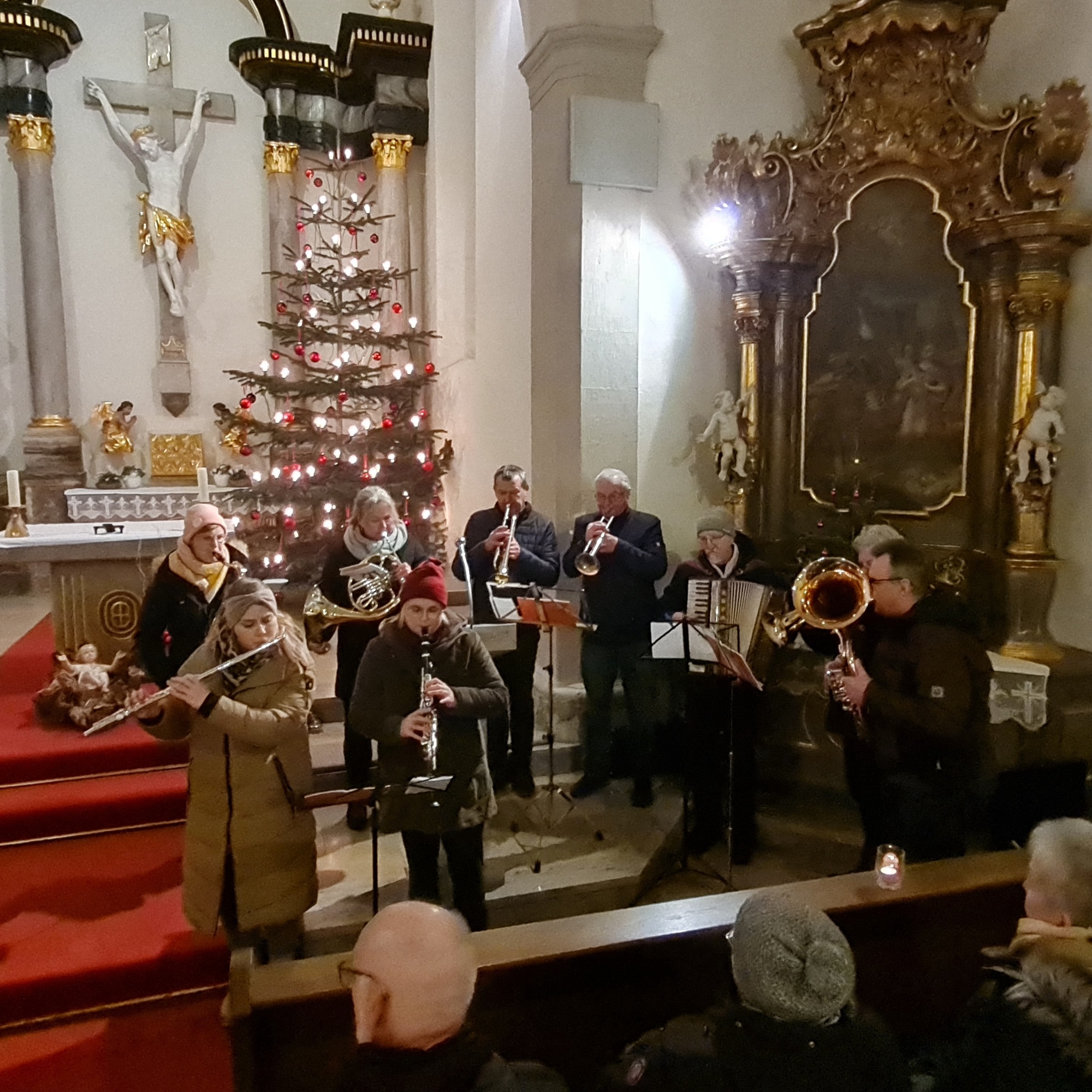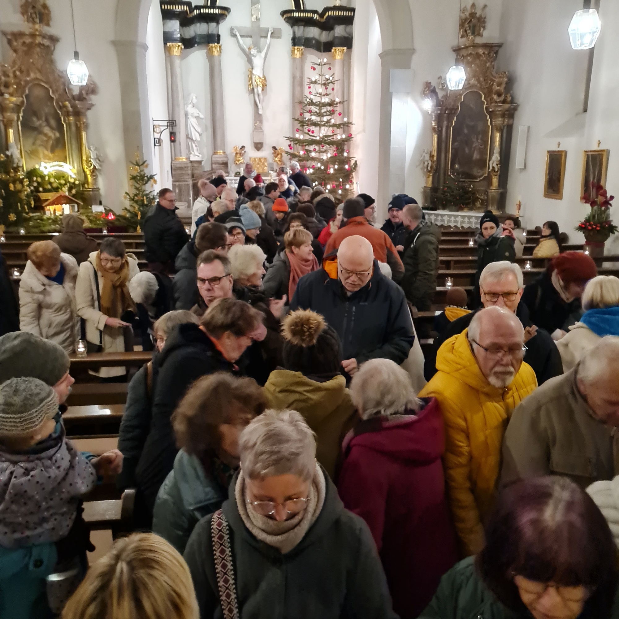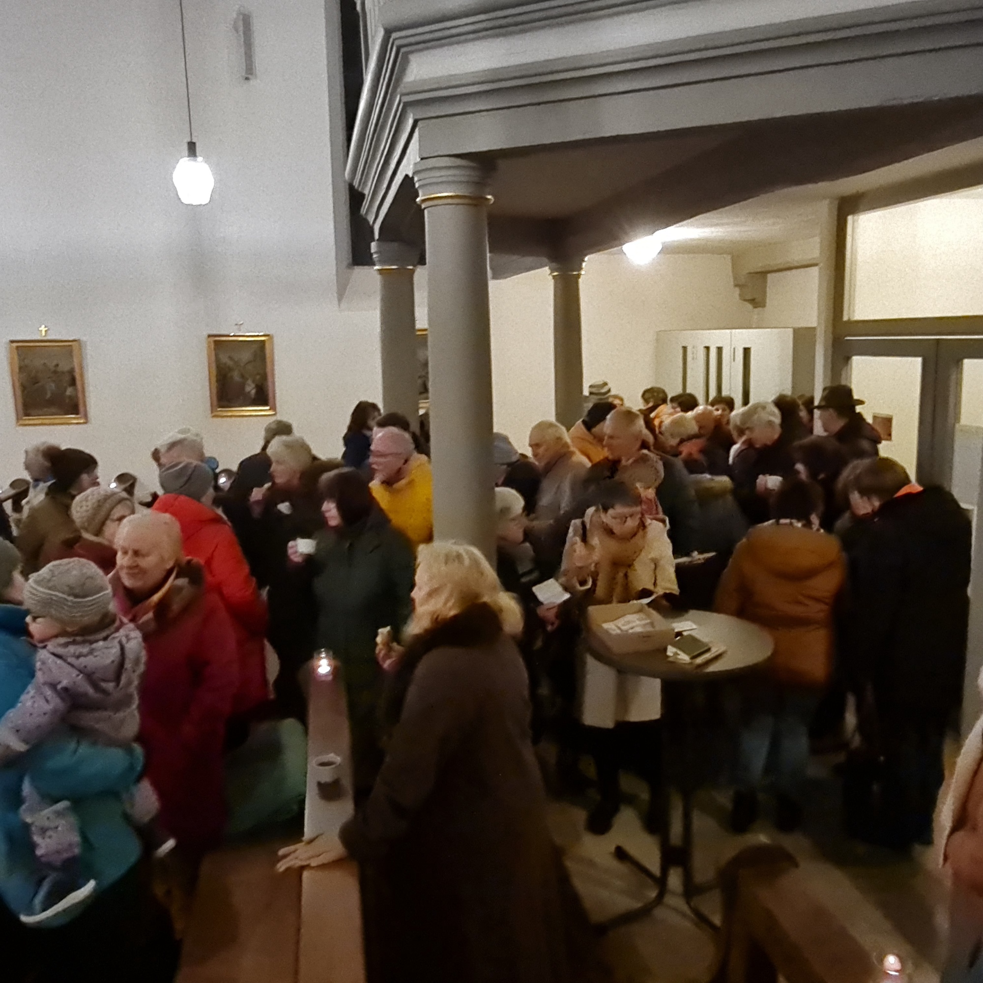 Nach dem gemeinsamen Lied "Segne du Maria", das von der Blaskapelle begleitet wurde, schloss sich wie immer an den offiziellen Teil eine rege Begegnung im Kirchenraum an. Dazu wurden verschiedene Leckereien angeboten und vor allem der heiße Glühwein wurde gerne angenommen. Es war wieder einmal ein gelungener Abend.
