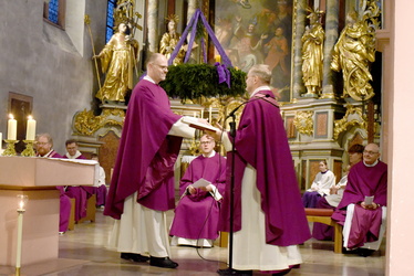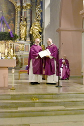 Zunächst aber wandte sich Generalvikar Dr. Vorndran an Pfarrvikar Piotr Bruski, der aufgrund seiner gesundheitlichen Einschränkungen um den Ruhestand gebeten hat. Der Generalvikar dankte Bruski für seine fruchtbare Tätigkeit im Bistum Würzburg und wünschte ihm für die nun beginnende Zeit alles Gute und Gottes Segen. Ihm wurde die bischöfliche Urkunde überreicht.