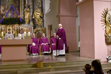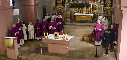 Es muss ein besonderer Anlass sein, wenn 30 Ministrantinnen und Ministranten, das gesamte Pastoralteam zusammen mit dem evangelischen Pfarrer Andreas Werner, Dekan Dr. Andreas Krefft und Generalvikar Dr. Jürgen Vorndran bei dicken Weihrauchschwaden und mächtiger Orgelmusik in die voll besetzte Kirche einzieht.