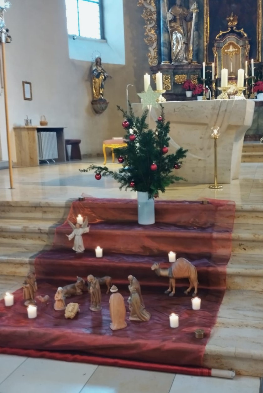 Am Silvestermorgen waren alle zu einem Familiengottesdienst in Oberstreu eingeladen. Gemeinsam blickte man am Jahresende noch einmal auf das Weihnachtsfest zurück. Anhand der Krippenfiguren wurde das Fest in Erinnerung gerufen. Unter Begleitung von Heiko an der Marimba und Herrn Dr. Heuring an der Orgel, empfingen die Kinder den Segen des Kindes aus der Krippe.
