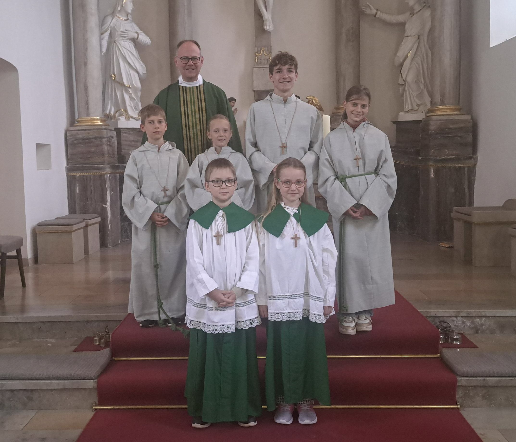 Am Samstagabend, den 12. Juli 2025, fand in der Pfarrgemeinde Reyersbach im Rahmen der Vorabendmesse eine besondere Feierlichkeit statt: die Einführung der beiden neuen Ministranten Johanna und Bastian. Pfarrer Behr fragte sie, ob sie ihren Dienst am Altar gewissenhaft und mit Freude erfüllen möchten. Mit einem kräftigen „Ich bin bereit“ zeigten Johanna und Bastian ihre Bereitschaft, aktiv am Gemeindeleben mitzuarbeiten. Im Anschluss wurden die Kreuze der neuen Ministranten gesegnet, und es wurde ein Segensgebet für sie gesprochen. Die Gemeinde zeigte ihre Unterstützung mit einem kräftigen Applaus. Pfarrer Behr bedankte sich außerdem bei Oberministrant Felix, der bereits fleißig mit den neuen Ministranten geübt hatte, und lobte sein Engagement. Ein freudiger Anlass, der die Gemeinschaft in Reyersbach sicherlich weiter stärkt!