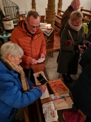 Spätestens dann zeigte sich Kirche mal anders: Begegnung und reger Austausch im Kirchenraum. Kinderpunsch, Glühwein und andere Köstlichkeiten versüßten die Gespräche und Rundgänge. Das Gemeindeteam in Nordheim hat sich wahrlich ins Zeug gelegt. „Kirche ist nicht statisch, Kirche das sind wir“ , das Begrüßungswort von Egon Bauß, wurde hier auf bemerkenswerte Weise mit Leben erfüllt. Mit Freude und Begeisterung wurden auch die „bemerkenswert-Pässe“ entgegengenommen. In Nordheim gab es dafür den ersten Stempel, eine Friedenstaube. Am 17. Dezember in Frickenhausen gibt es den nächsten Stempel. Sind Sie neugierig? Dann sind Sie herzlich eingeladen, sich bei den kommenden Veranstaltungen überraschen zu lassen.