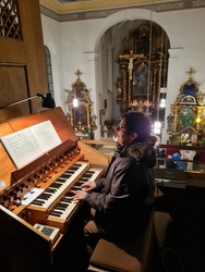 Zwischendurch erklang auch die Orgel. Das Instrument wurde 1795 von Orgelbauer Johann Brehler aus dem Fuldischen erbaut und die meisten Register der Orgel sind bis heute erhalten. Daher bietet die Orgel auch einen ganz charakteristischen Klang, den die Organistin Andrea Werner eindrucksvoll zu Gehör brachte.