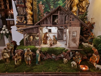 Etwas Bemerkenswertes ist auch die Weihnachtskrippe. Die Figuren, der Rhöner Scheunenhof, die Rhöner Landschaft und das Hintergrundbild mit dem Kreuzweg zur Sebastianskapelle ist ein Identifikationsmerkmal der Nordheimer. Erstmals in diesem Jahr erscheinen die Figuren in neuem Glanz, konnten sie doch mit einem Zuschuss der Kreiskulturförderung des Landkreises liebevoll restauriert werden.