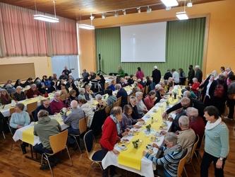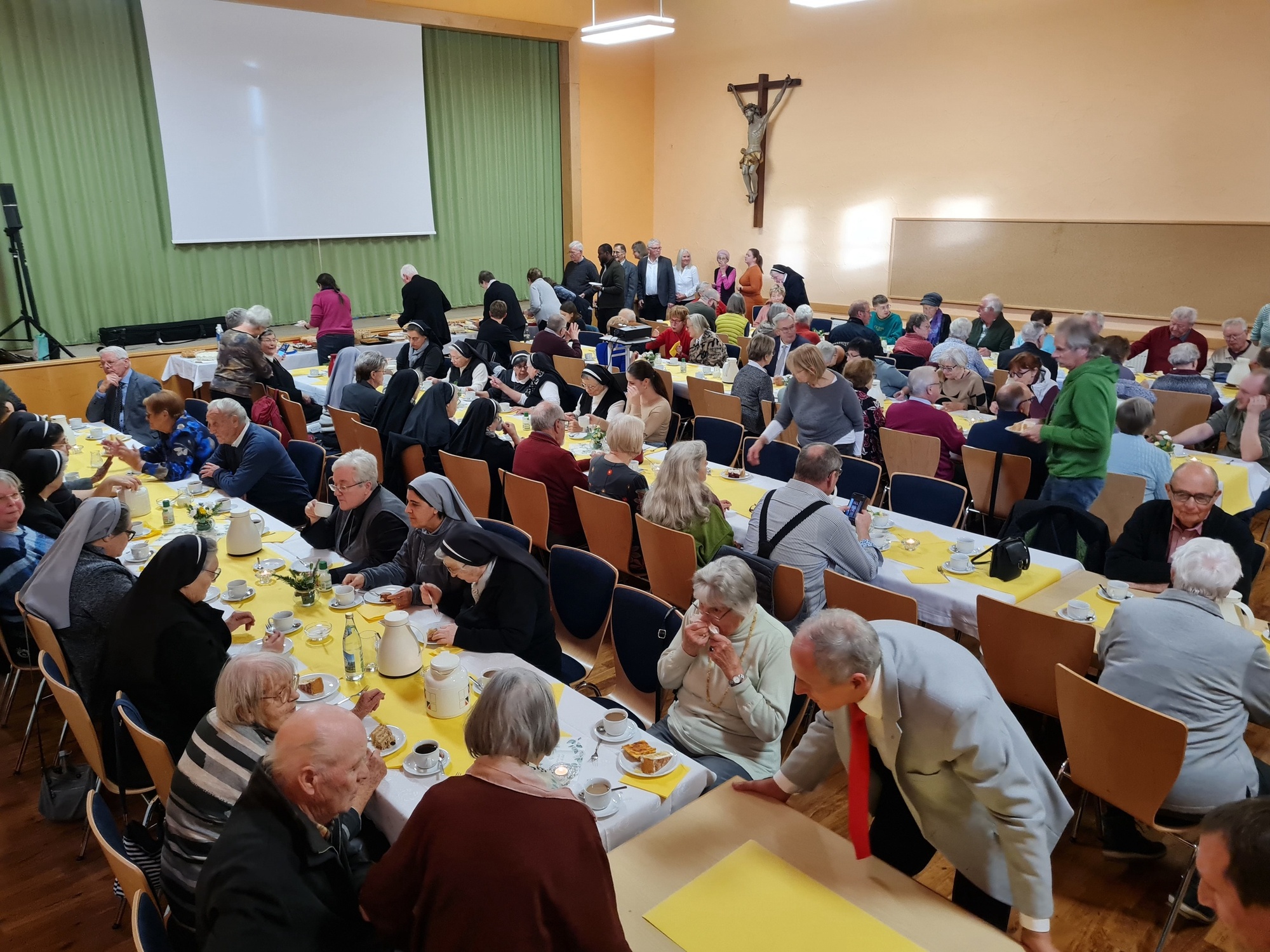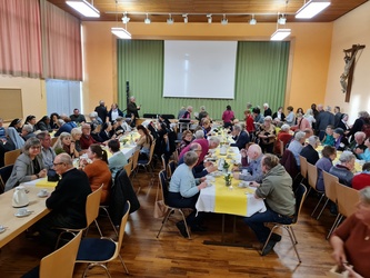 Am Nachmittag hatte das Gemeindeteam und die Kirchenverwaltung Mellrichstadt die Öffentlichkeit zu einer Begegnung in den Pfarrsaal eingeladen. Viele sind dieser Einladung gefolgt, es mussten sogar zusätzliche Tische und Stühle aufgebaut werden.
