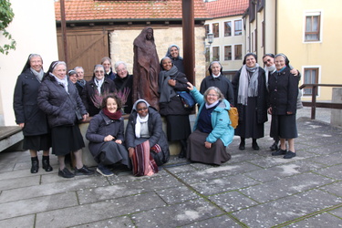 Insgesamt 23 Schwestern reisten nach Mellrichstadt an, darunter die Generaloberin Sr. Samuela Maria Rigon aus Rom, die Generalarchivarin Sr. Teresina Marra, ebenfalls aus Rom, die Mitglieder des Generalrates, S. Julie Marie Peters aus der Karibik, Sr. Maria Vinton aus den USA und Sr. Anna Maria Buchini aus Brasilien. Auch aus Wien sind Schwestern gekommen und natürlich auch aus Abenberg (Landkreis Roth), zusammen mit der Delegationsleiterin in Deutschland, Sr. Beate Nieberler. Ganz besonders freuten sich die Gastgeber über das Wiedersehen mit Sr. Eberharda und Sr. Meinrada, die im September 2021 in Mellrichstadt verabschiedet wurden. Nach 55 Jahren des Wirkens der Schwestern in Mellrichstadt, waren sie die letzten beiden, die im Schwesternhaus in der Bauerngasse gewohnt hatten.