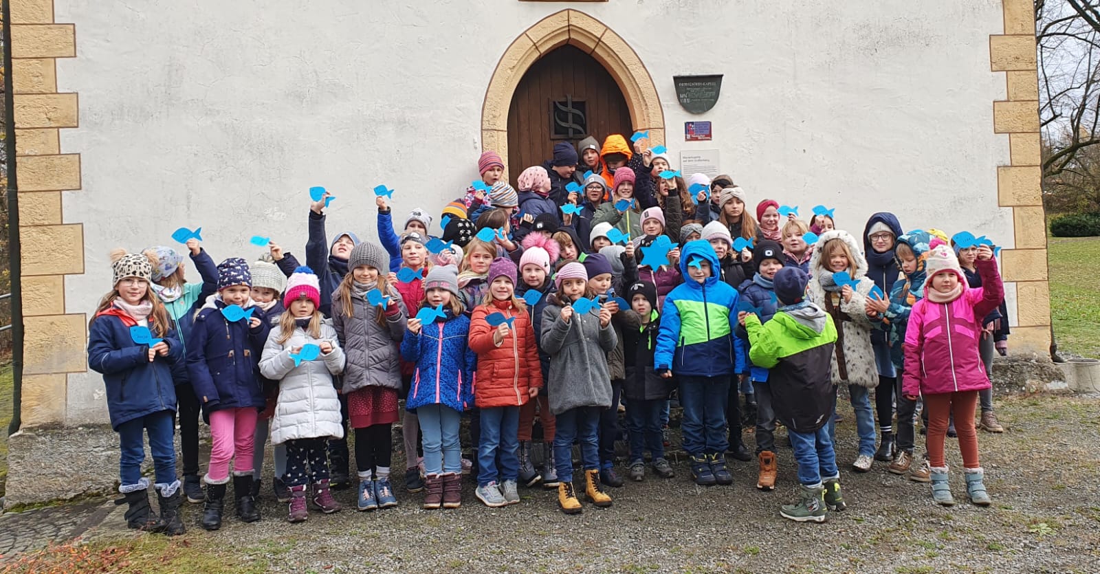 Bei einer Rallye zum Großenberg begaben sich nun alle zusammen auf Spurensuche und folgten den Fischen auf dem Weg. An der Kapelle erhielten sie ihren ganz persönlichen Fisch aus der entdeckten Schatzkiste.