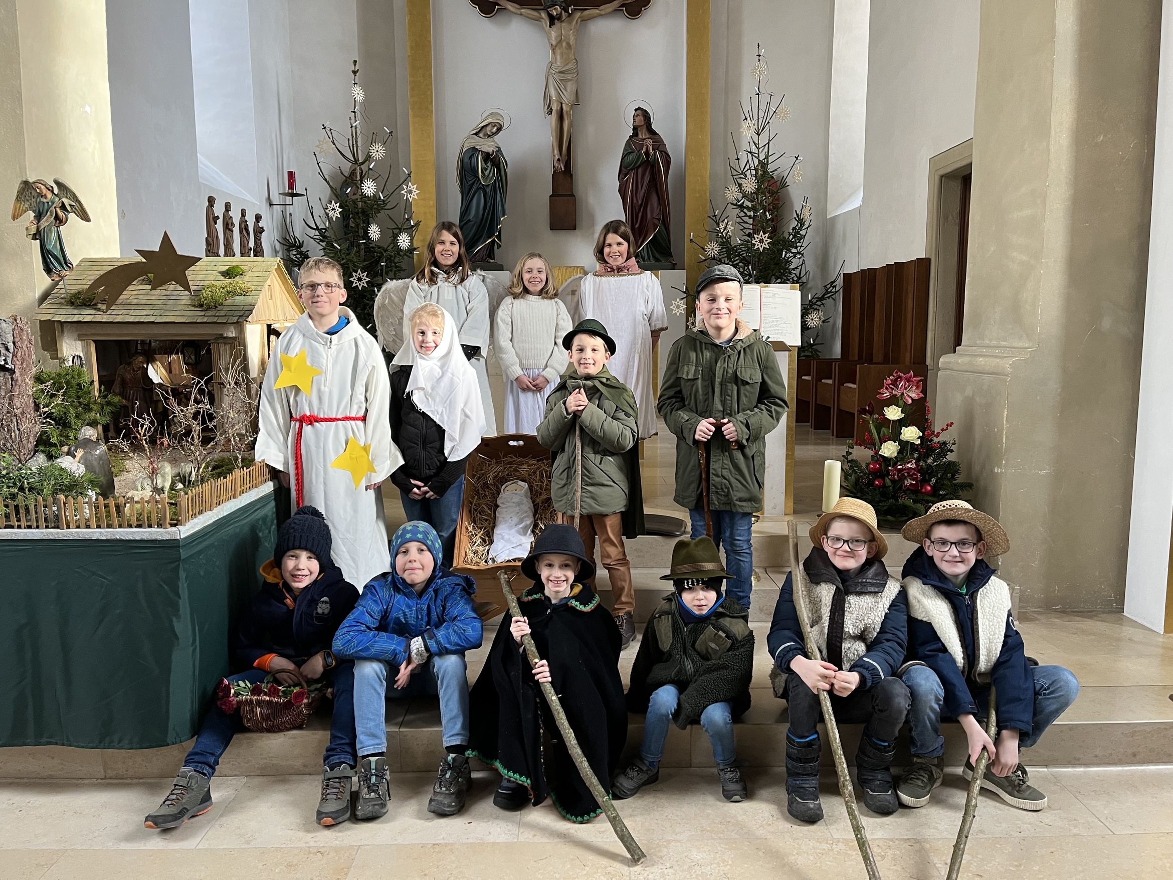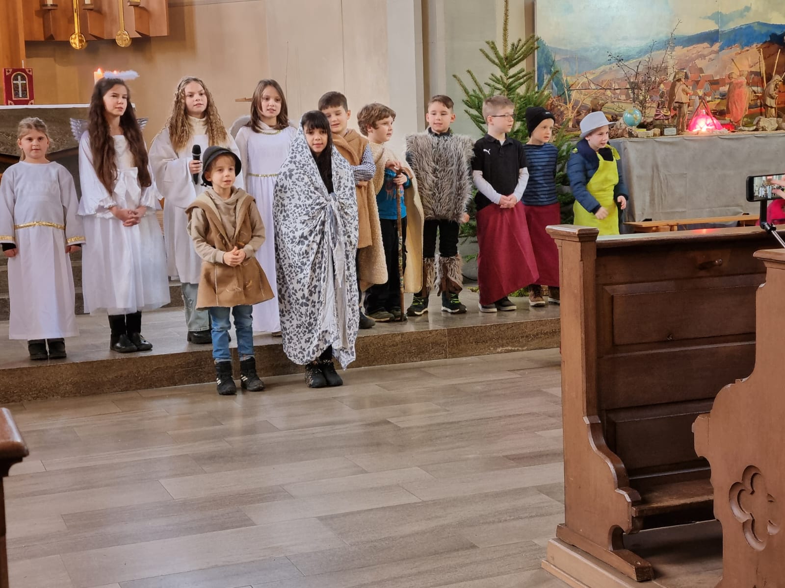 In den vollbesetzten Kirchen erzählten sie den Menschen von dieser besonderen Nacht. Und so erfuhren die Kinder, die zunächst hauptsächlich die Geschenke im Sinn hatten, und die Gottesdienstbesucher von der frohen Botschaft der heiligen Nacht. Vom Kind in der Krippe, Gottes Mensch gewordener Liebe; von einem Gott, der alle Menschen liebt, der uns mit Jesus das größte Geschenk an Weihnachten gemacht hat. Diese Botschaft konnten jung und alt mit nach Hause nehmen. Es hat allen gefallen. Das zeigte auch der Applaus und die Kinder waren stolz und glücklich.