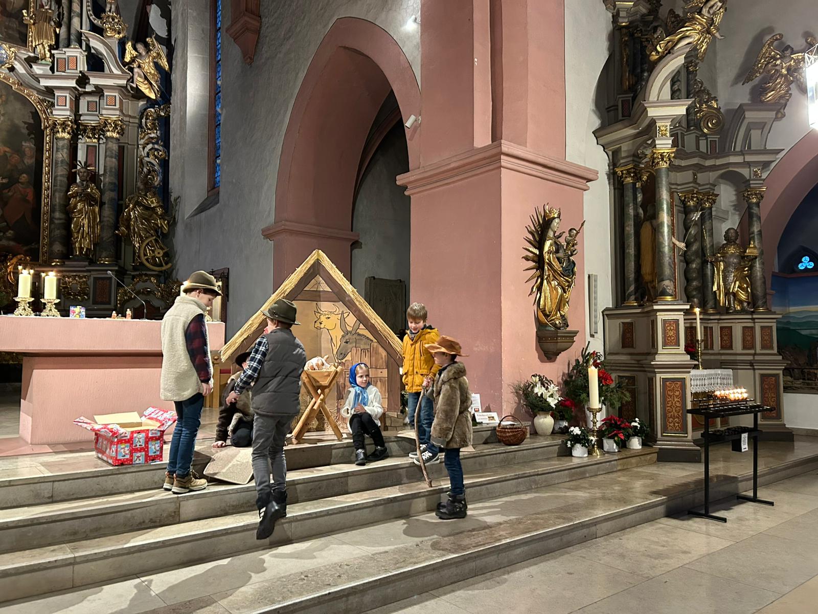 Schnell füllten sich auch in diesem Jahr wieder die festlich geschmückten Kirchen zu den sieben Krippenfeiern im Pastoralen Raum. Darunter auch aufgeregte Kinder: unter den helfenden Händen der Familiengottesdienstteams sind die kleinen Akteure in einen Boten, in Maria und Josef, Wirte und Wirtinnen, Hirten und Engel und sogar in die Rolle eines Esels geschlüpft. Und dann war es soweit: