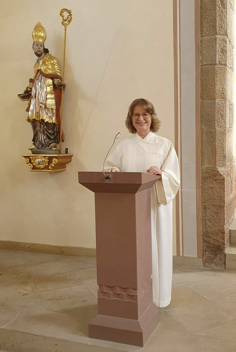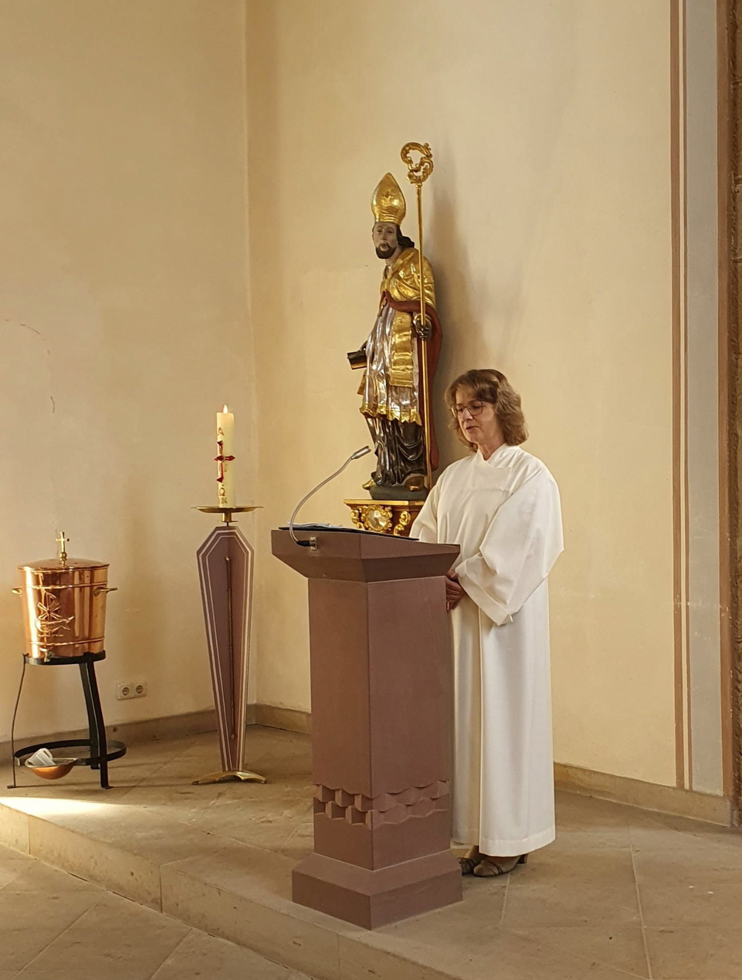 "Es ist gut, dass ihr heute hier seid, um in diesem Glauben miteinander Gottesdienst zu feiern", sprach Frau Schäfer den Rödlesern zu und sagte, dass sie immer gerne in Rödles gewesen sei. Ihr Dienst als Gemeindereferentin hätte sie sehr beschenkt. Sie erinnere sich gerne und dankbar an die Arbeit mit dem Pfarrgemeinderat bzw. dem Gemeindeteam und mit der Kirchenverwaltung und wäre so gerne noch länger geblieben. Natürlich sei dabei nicht immer alles „perfekt“ gewesen. Sollte sie also etwas versäumt oder jemanden verärgert haben, so möge man ihr dies verzeihen, bat sie.