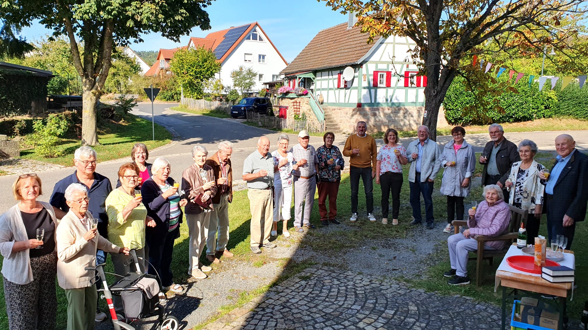 Im Anschluss waren alle noch eingeladen, draußen beim kleinen Sektempfang miteinander anzustoßen und einander Danke und Lebewohl zu sagen.