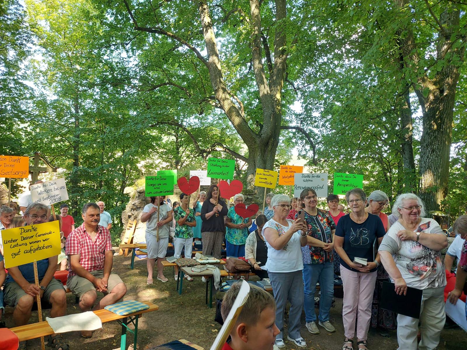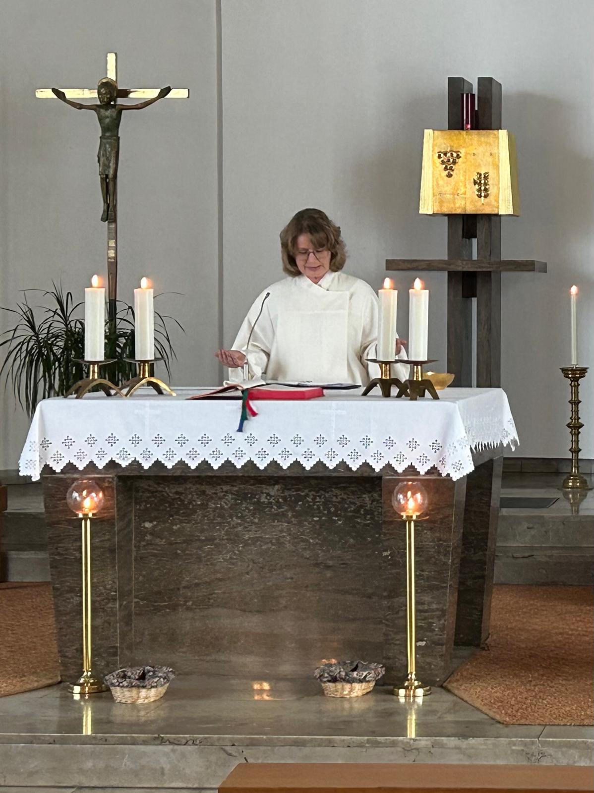 Mit einem warmherzigen Lächeln begrüßte sie die Besucher und freute sich, mit ihnen im Glauben verbunden, noch einmal Gottesdienst feiern zu dürfen. Und das tat sie dann in ihrer freundlichen Weise – offen, authentisch und aus innerer Überzeugung sprach sie direkt in die Herzen der Menschen.