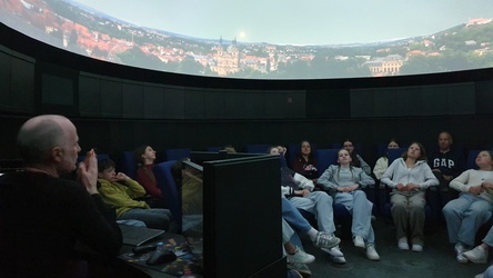 Vor Ort wurde die Gruppe nach Alter aufgeteilt: Die Jüngeren starteten mit einem Besuch im Fuldaer Planetarium, wo sie sich auf eine spannende und beeindruckende Reise durch den Sternenhimmel, unser Sonnensystem und das Weltall begaben. Die besondere Darstellung von den Himmelskörpern begeisterte die Kinder und Jugendlichen und regte zum Staunen an.