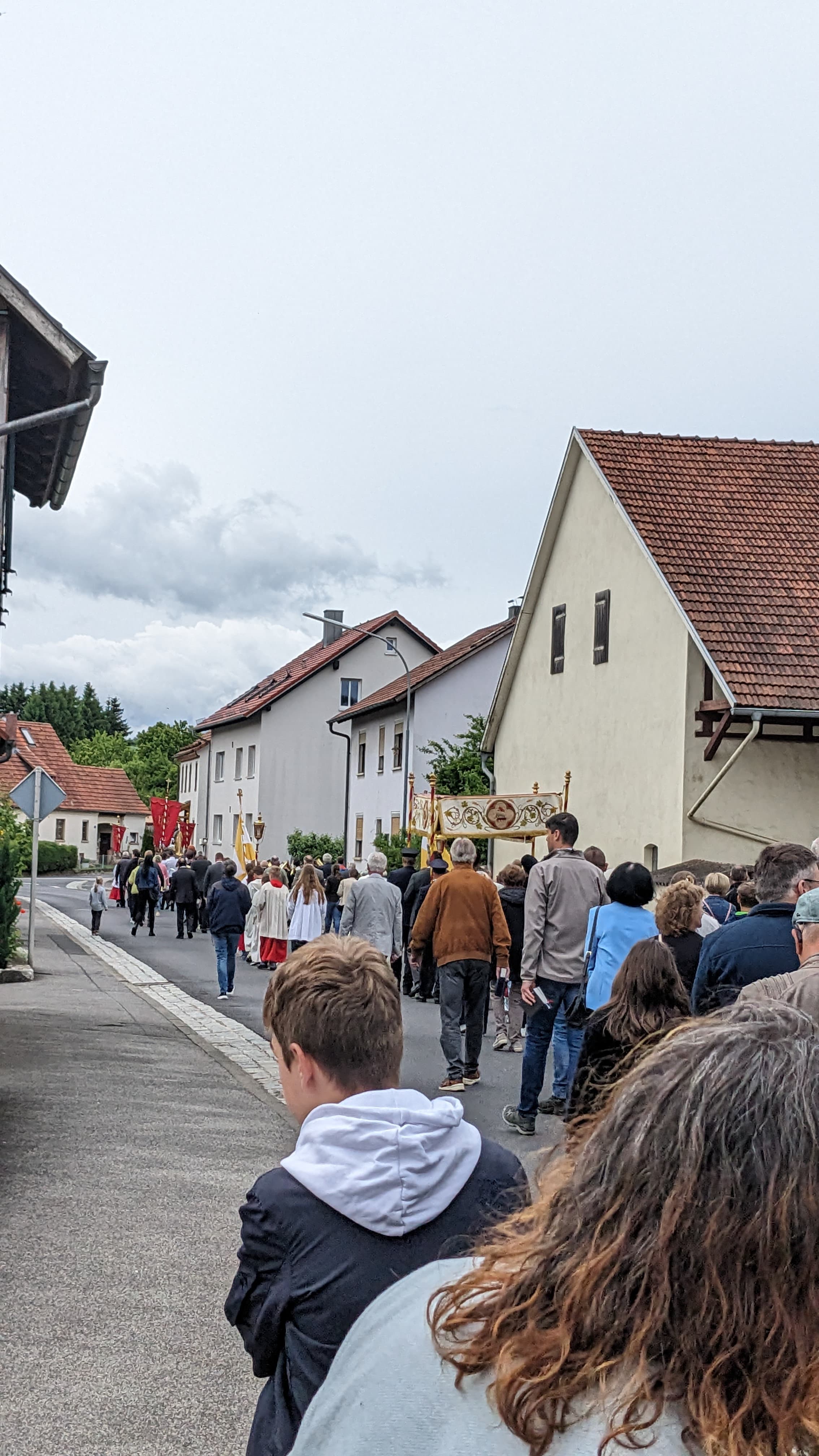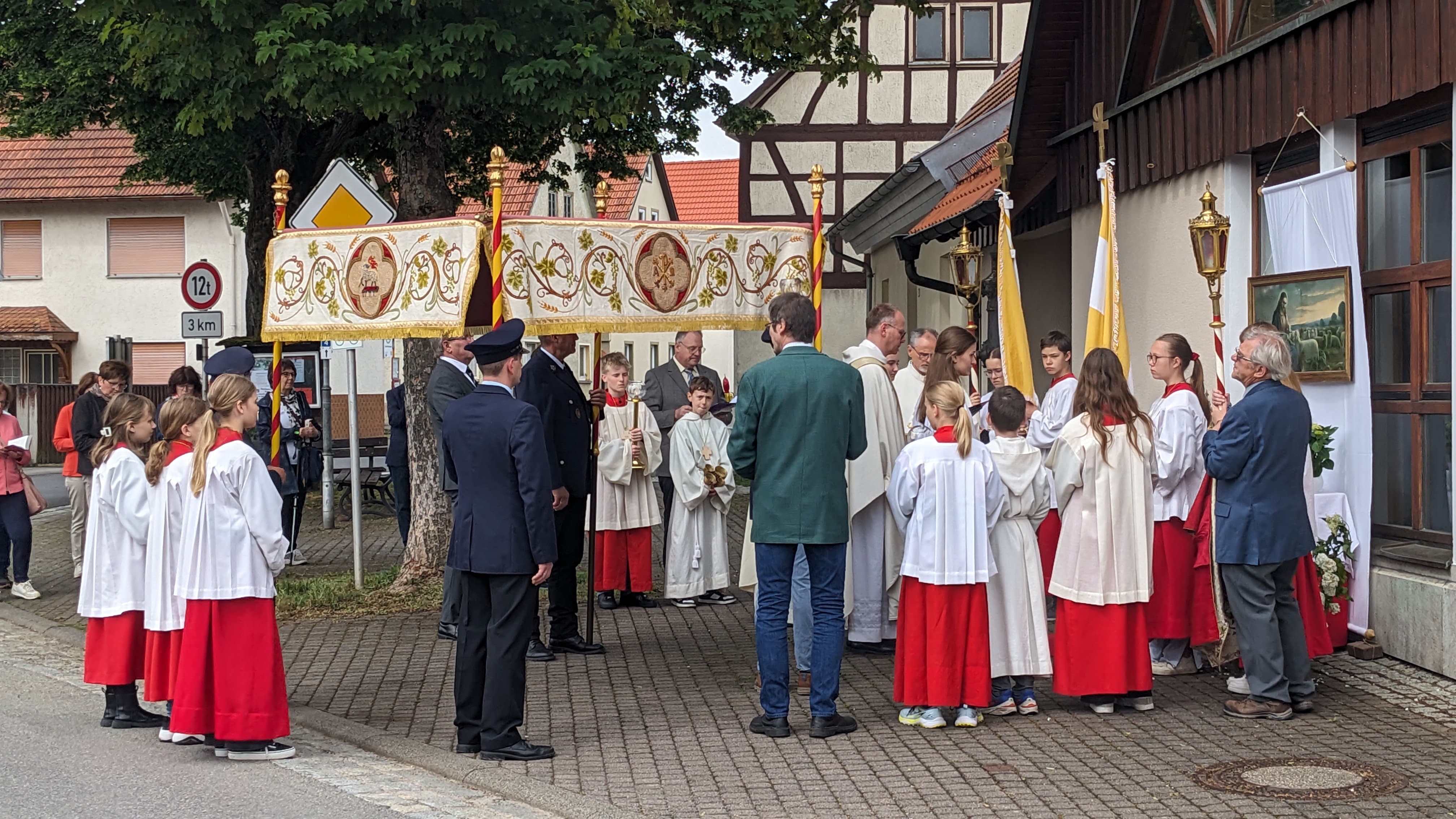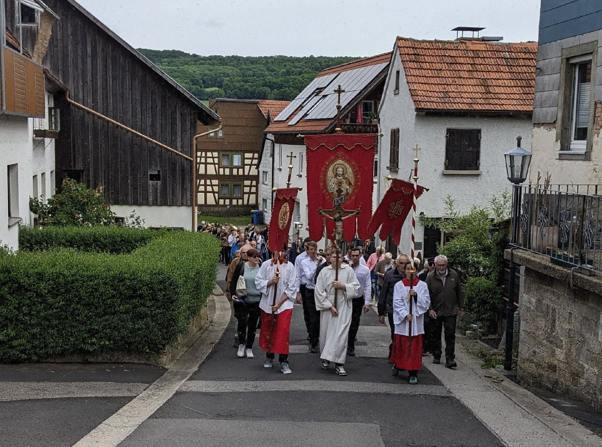 Der festliche Gottesdienst wurde zusammen mit dem aus Italien stammenden Gastpriester Don Gaudenzio, Diakon Peter Schubert und Pfarrer Steffen Behr gefeiert. Knapp 30 Ministranten aus den Gemeinden Oberfladungen, Heufurt, Leubach und Fladungen waren im Einsatz und sorgten für eine festliche liturgische Feier. Die große Beteiligung der Gläubigen und vor allem der Ehrenamtlichen ermöglichte im Anschluss an den Gottesdienst eine Prozession durch Oberfladungen mit vier Stationen, die thematisch mit den Elementen Wasser, Feuer, Luft und Erde von Gästen aus den umliegenden Gemeinden gestaltet wurden.