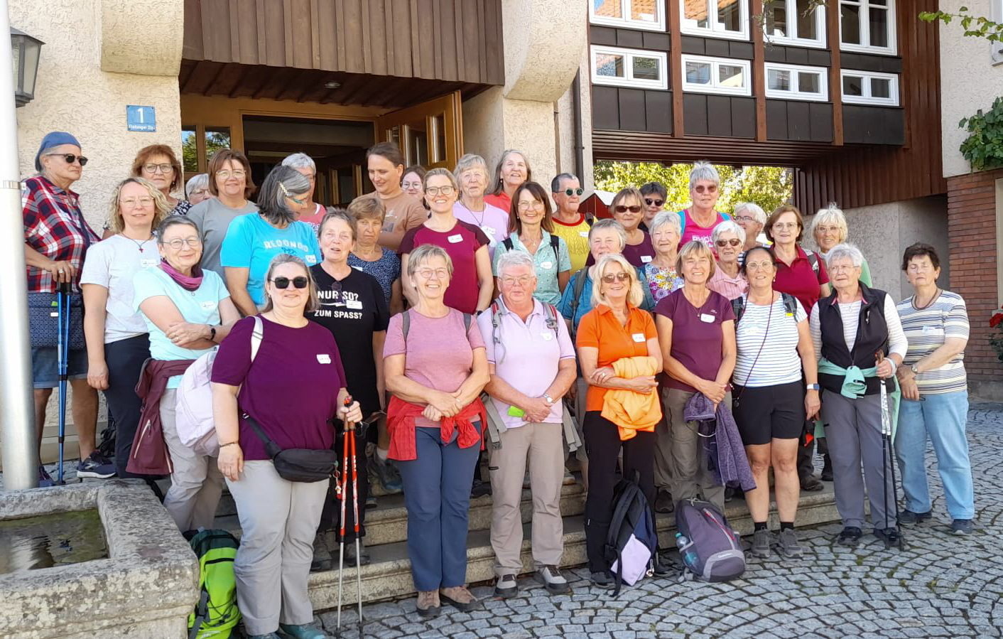 Am 6.September 2025 trafen sich 35 Frauen bei bestem Wanderwetter in der Kirche in Hausen. Dem Motto des Heiligen Jahres entsprechend machten sie sich als „Pilgerinnen der Hoffnung“ auf einen rund 12 Kilometer langen Weg durch die Rhön auf. Gemeinsam inne halten mit christlichen und anderen Texten, mit Symbolen der Hoffnung wie Anker, Licht und Brot, mit Gesang und Gebet und vielen Gesprächen während des Pilgerns ging es von Hausen über Heufurt nach Fladungen. Nach einer ausgiebigen Mittagspause führte der Weg über die Gangolfskapelle zurück in die Hausener Kirche. Geistlich, seelisch und dank Kaffee und Kuchen zum Abschluss auch körperlich gestärkt traten die Frauen den Nachhauseweg an. Dank der sorgfältigen Organisation durch Pastoralreferentin Michaela Köller und das Frauenteam des pastoralen Raumes Mellrichstadt war der Ausflug ein voller Erfolg und wird allen Teilnehmerinnen in bester Erinnerung bleiben.