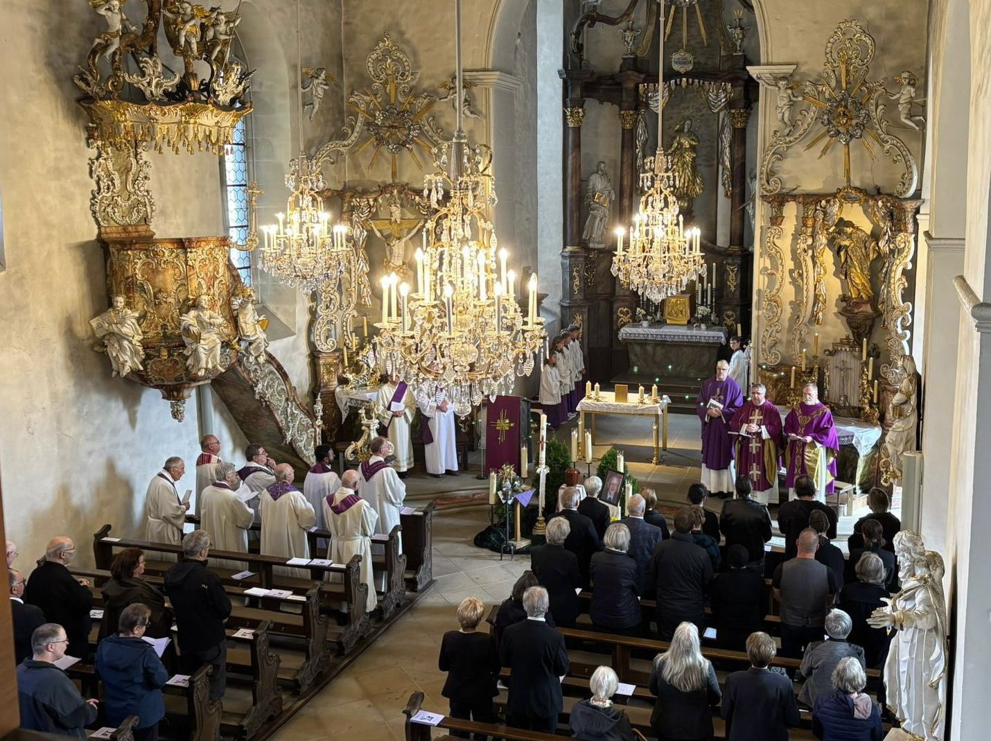 In einem feierlichen Requiem wurde am vergangenen Freitag Pfarrer i. R. Albert Leutbecher verabschiedet, der am 28. August im Alter von 85 Jahren im Franziska-Streitel-Altenheim in Mellrichstadt verstorben ist. Zahlreiche Gläubige, und Weggefährten versammelten sich in der Pfarrkirche St. Kilian Fladungen, um dem beliebten und geschätzten Seelsorger die letzte Ehre zu erweisen.