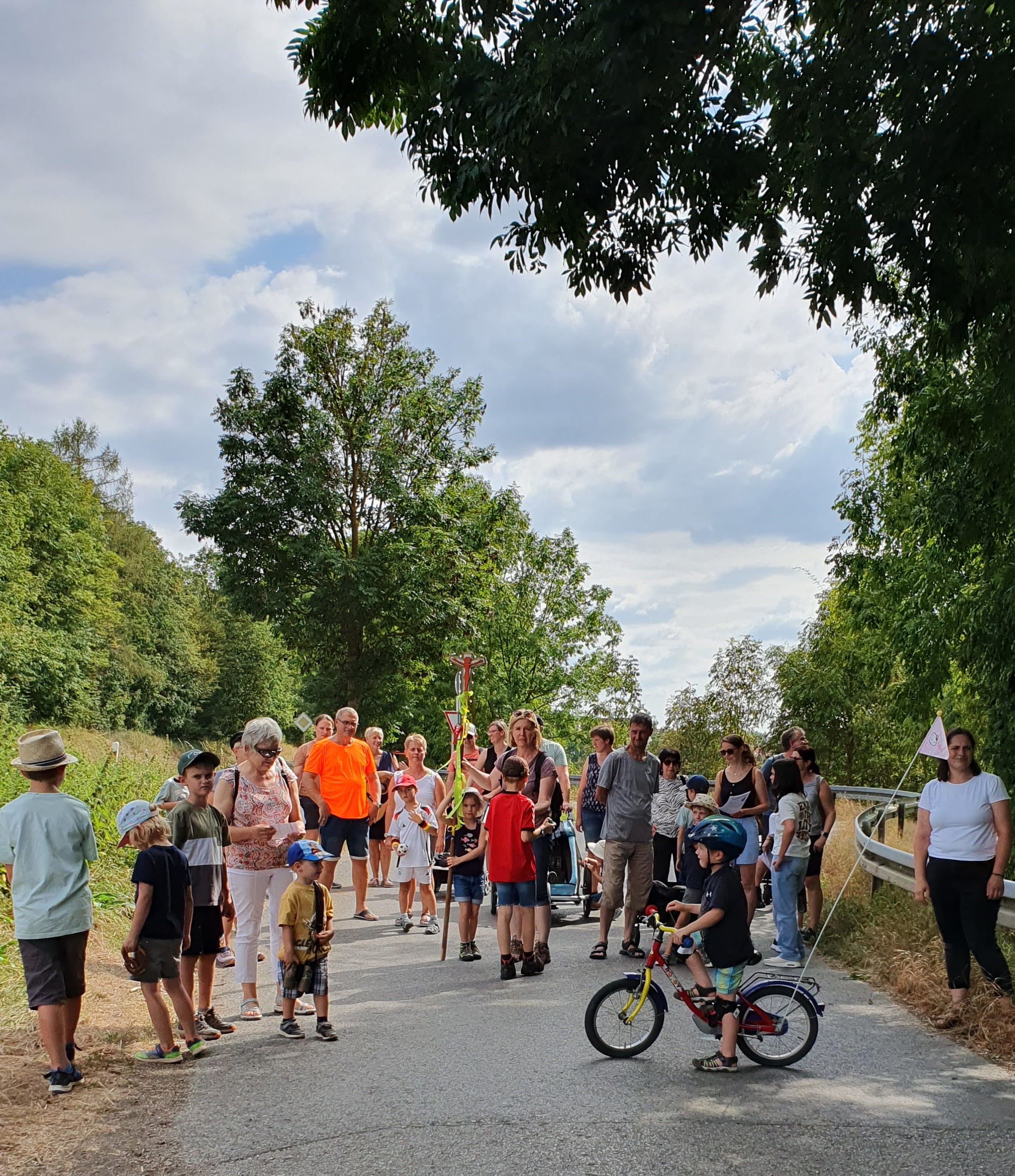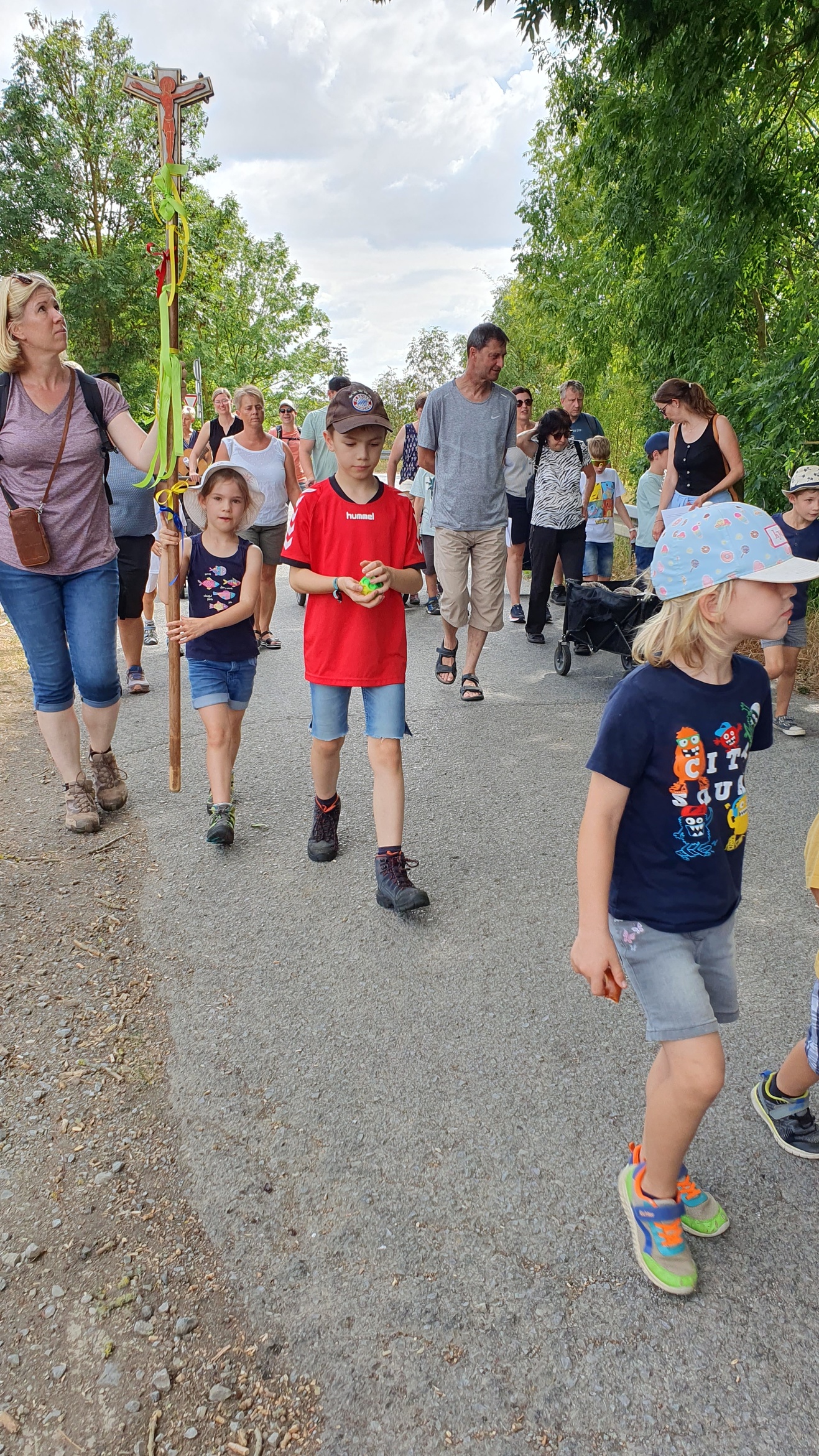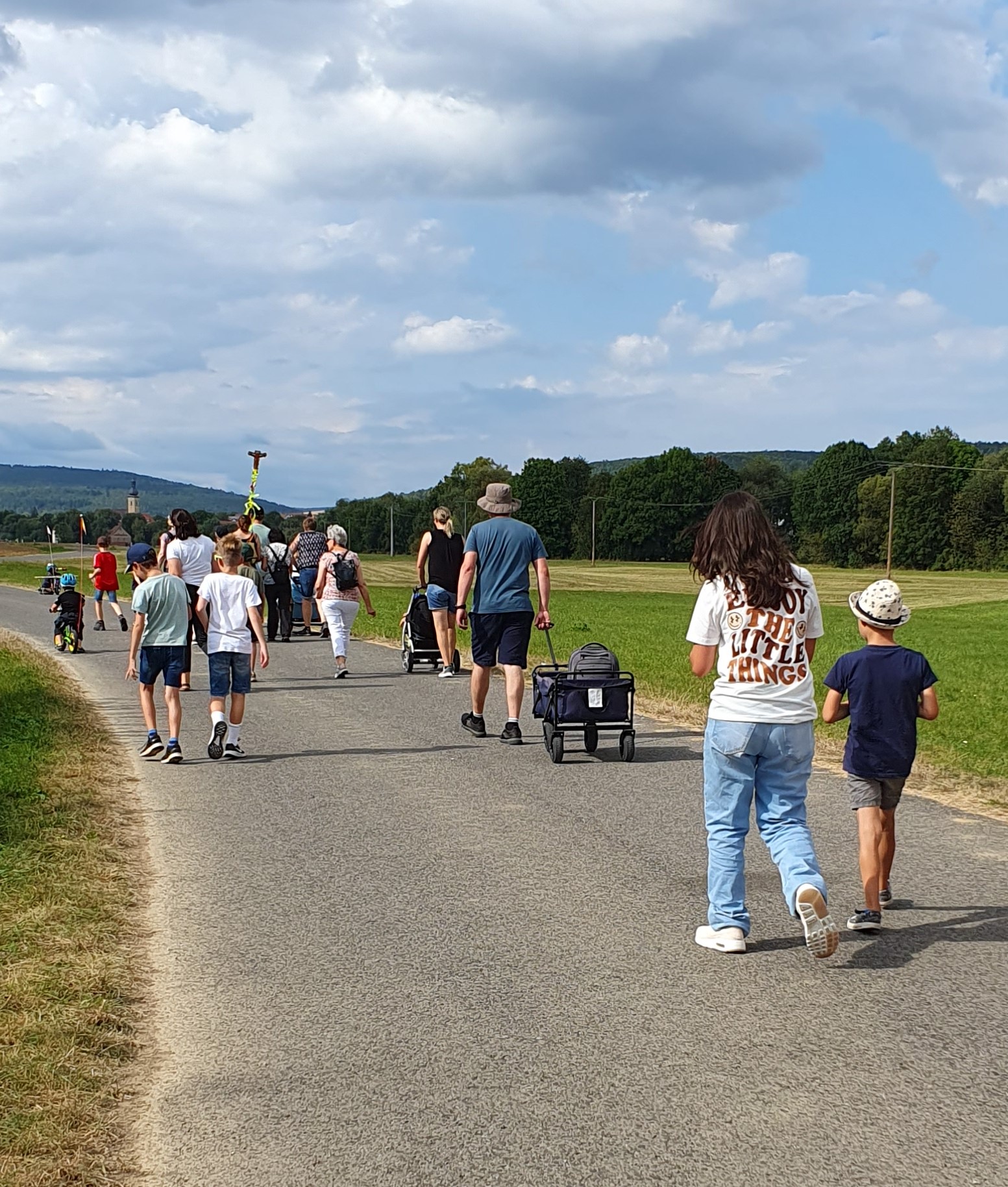 Gut ausgerüstet, mit Bollerwagen und kühlen Getränken im Rucksack, unternahmen Jung und Alt am Sonntagnachmittag eine anschauliche Familienwallfahrt unter dem Motto „So wunderbar ist Gottes Schöpfung“, vorbereitet und geleitet von den Familiengottesdienst-Teams unter Gemeindereferentin Michaela Köller.