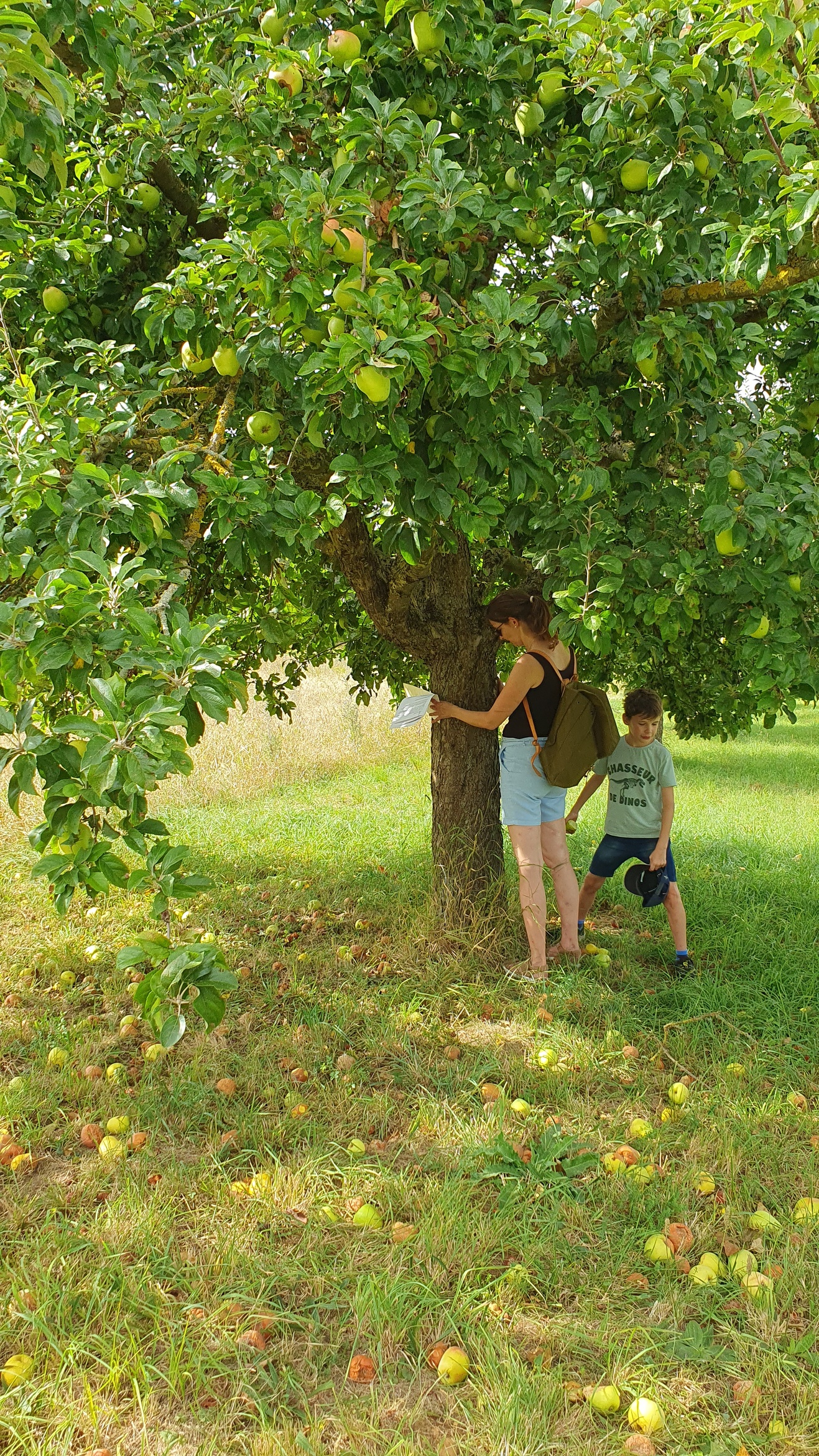 So spürten die Kinder z.B. nach, wie es sich anfühlt, nicht sehen zu können, als sie mit verbundenen Augen an einem Seil entlanggingen. Oder sie probierten aus, auf verschiedenem Untergrund zu gehen, und versuchten, den „Baumpuls“ zu erspüren, indem sie ihre Hände an den Stamm legten.