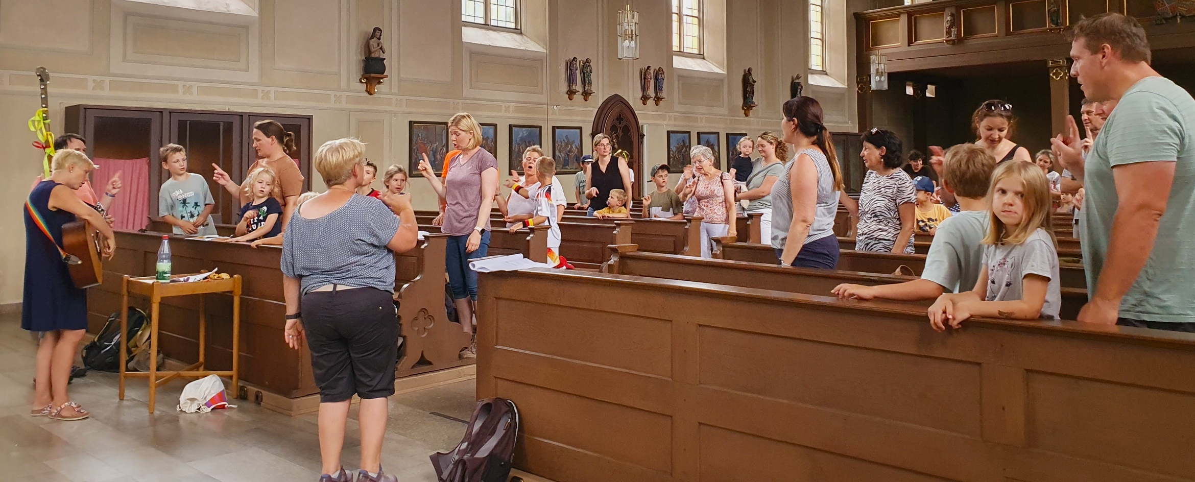 Nach dem Segen sangen alle mit Begeisterung „Vom Anfang bis zum Ende hält Gott seine Hände über mir und über dir.“