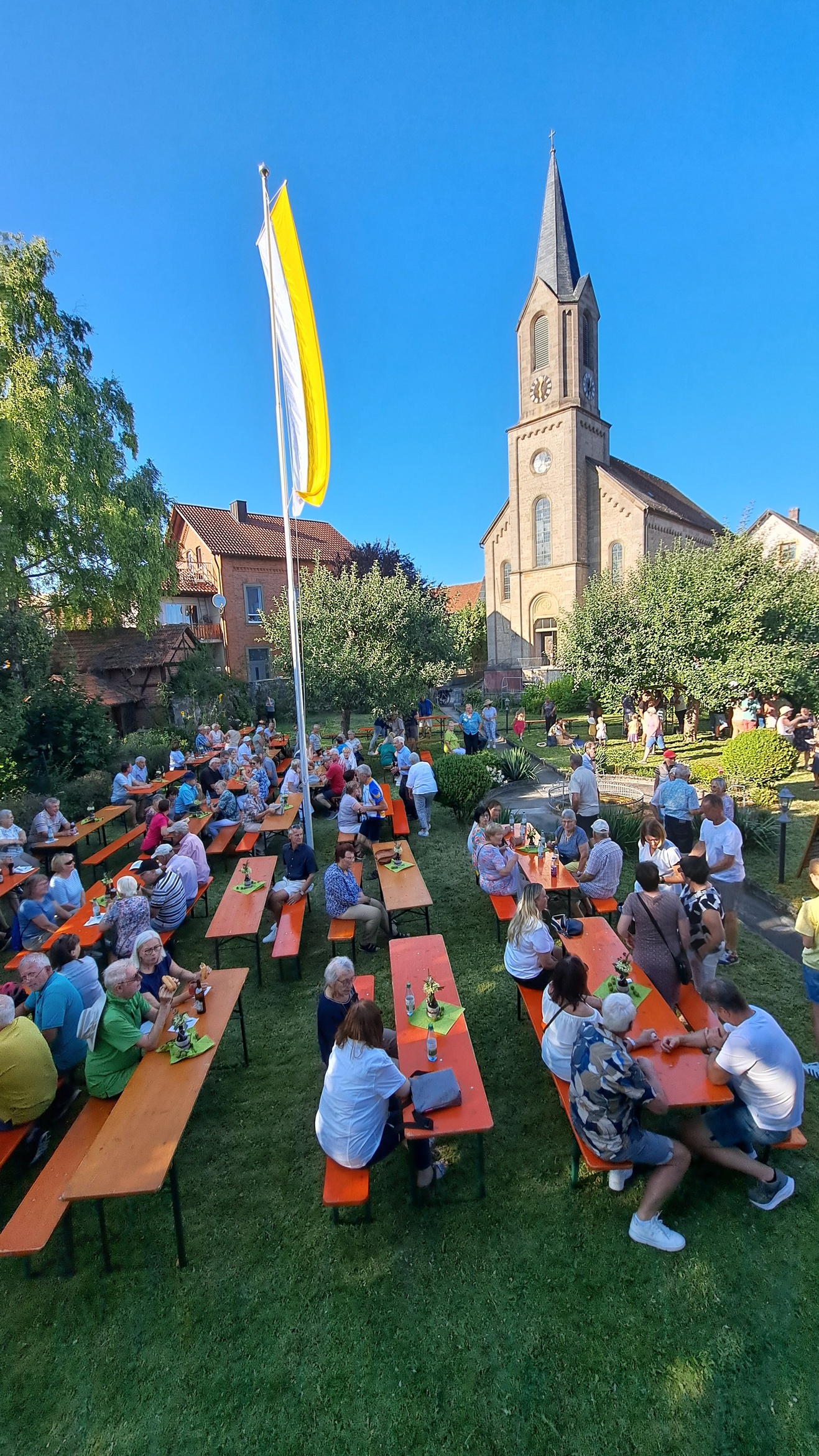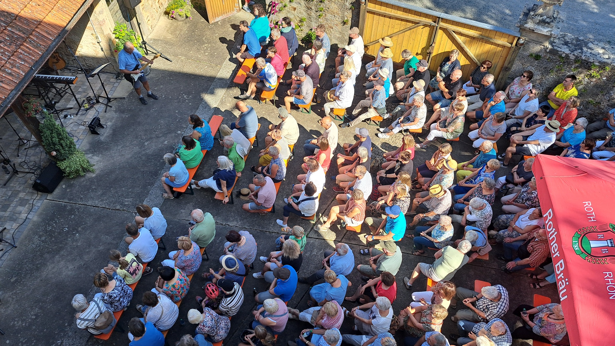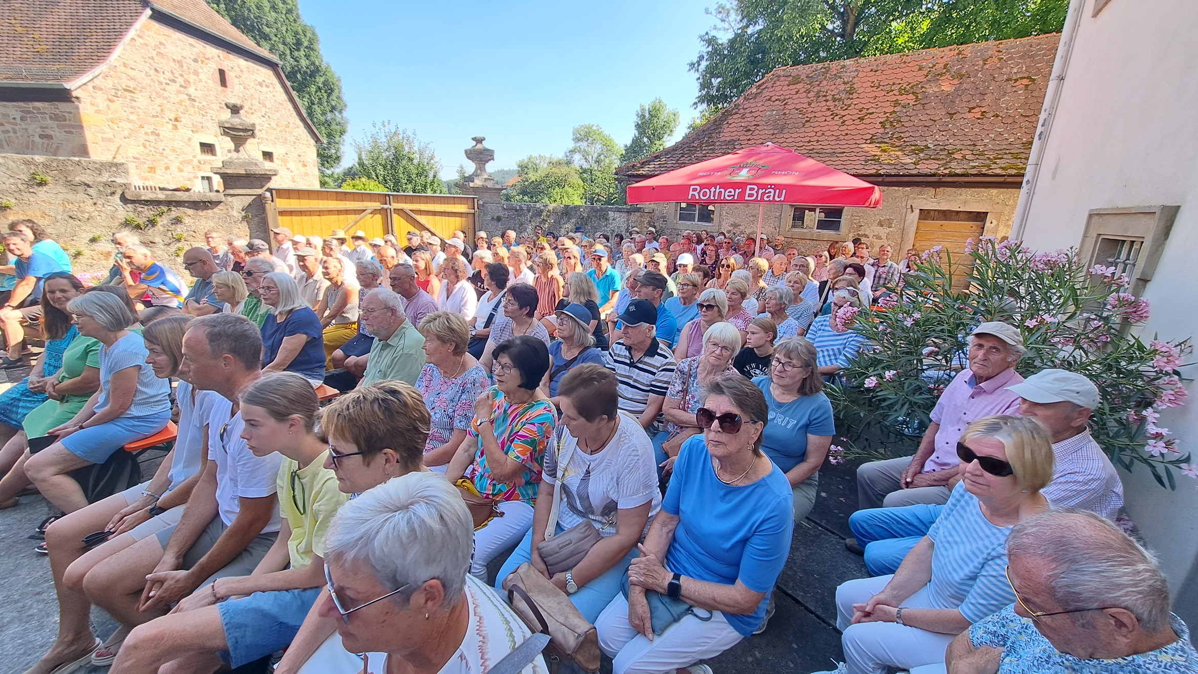 Pfarrer Steffen Behr begrüßte die zahlreichen Gäste zu einem musikalischen Abend, der die Erwartungen weit übertroffen hat. In einer Zeit, in der sich kirchliche Veranstaltungen, Traditionen und liebgewonnene Angebote häufig dem Rotstift gegenübersehen – sei es aus mangelnder Nachfrage, fehlendem Engagement oder knapper Personalressourcen – zeigte dieses Format, wie erfrischend Neues sein kann. Bei herrlichem Sonnenschein und angenehmen Temperaturen füllte sich der Hof rasch mit Musikliebhabern. Die aus dem Raum Gemünden a. M. stammende Band Play on präsentierte sich mit starken Stimmen und abwechslungsreichen Arrangements: Peter Häring und Egon Birkenmaier bilden seit mehr als fünf Jahrzehnten ein eingespieltes Duo, unterstützt wurden sie von Dieter Holl. Gemeinsam brachten die drei Musiker Folk-, Country-, Bluesrock- und Rhythm & Blues-Klänge auf die Bühne. Repertoire-Highlights reichten von Crosby, Stills, Nash & Young über Sting, Eric Clapton, Bill Withers, Bob Dylan, The Beatles bis hin zu Simon & Garfunkel. Die Songs zeichneten sich durch abwechslungsreiche Harmonien, markante Stimmen, mehrstimmigen Gesang, ausgefeilte Arrangements und tiefgreifende Texte aus, die beim Publikum für manche Gänsehautmomente sorgte. Pfarrer Steffen Behr unterstützte bei einigen Stücken gesanglich die Musiker und wurde von den Zuhörern mit herzlichem Applaus bedacht. Die Zuhörer zeigten sich begeistert: Sie sangen und klatschten rhythmisch zu vielen Liedern mit. Zum Abschluss bedankte sich Pfarrer Behr herzlich bei den Künstlern und allen Engagierten hinter den Kulissen. Eine Spende wurde gesammelt, deren Erlös der dringend notwendigen Treppensanierung der Bastheimer Kirche zugutekommen soll. Im Anschluss lud Pfarrer Behr im Namen der Kirchenverwaltung und dem Gemeindeteam zum Grillen in den Pfarrgarten ein – eine gelungene Gelegenheit zum geselligen Ausklang des Abends. Die erfolgreiche Premiere des Sommerloch-Konzertes lässt hoffen, dass diese Veranstaltung im kommenden Sommer fortgesetzt wird.