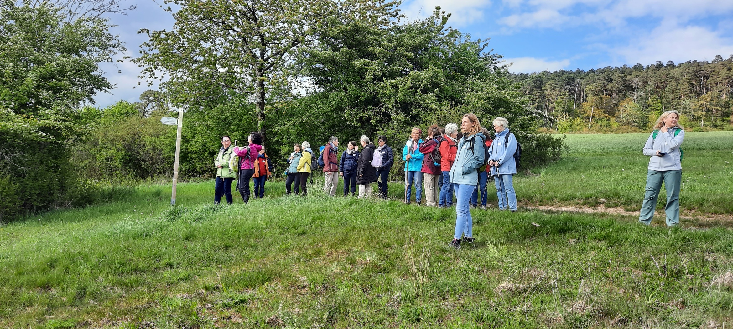 Die Wegstücke waren teilweise gut zu laufen, aber es gab auch Wegbereiche, die anspruchsvoll waren, wo man sich gegenseitig Halt gab, um nicht in den Pfützen, die der Regen der vergangenen Tage, im Wald hinterlassen hatte, zu versinken. Durch das hervorragende Wetter war auch hier wieder ein guter Blick über die Landschaft und dem Kreuzberg möglich.