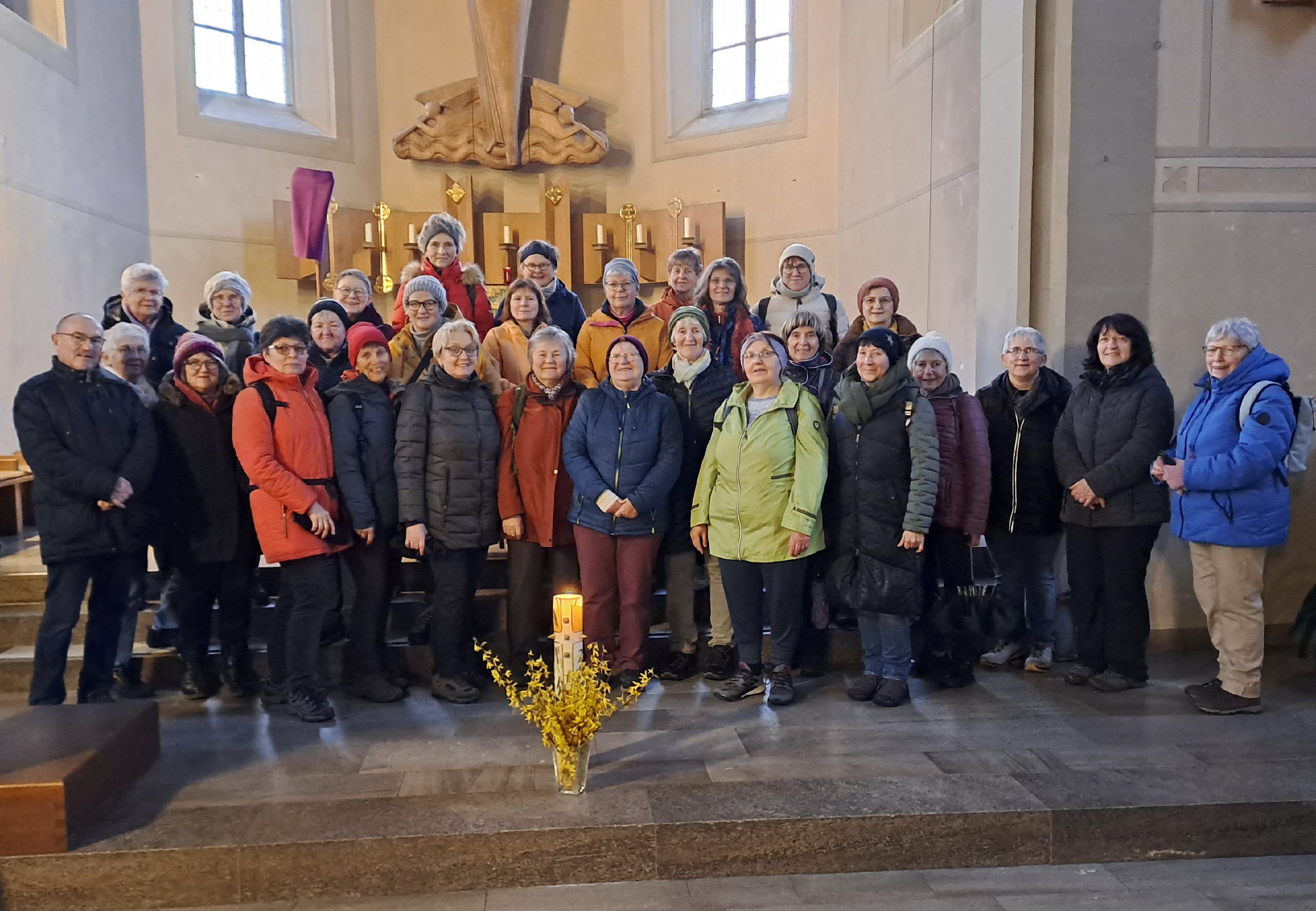 Bei etwas stürmischem Wetter war man gemeinsam rund um Stockheim unterwegs. Das Osterevangelium begleitete die Teilnehmer und Teilnehmerinnen dabei. Die Wegstrecke wurde durch verschiedene Stationen unterbrochen. An den Haltepunkten teilte man zusammen die Osterbotschaft aus dem Markusevangelium, vertiefte sie mit verschiedenen Impulsen, Liedern und Gebeten.