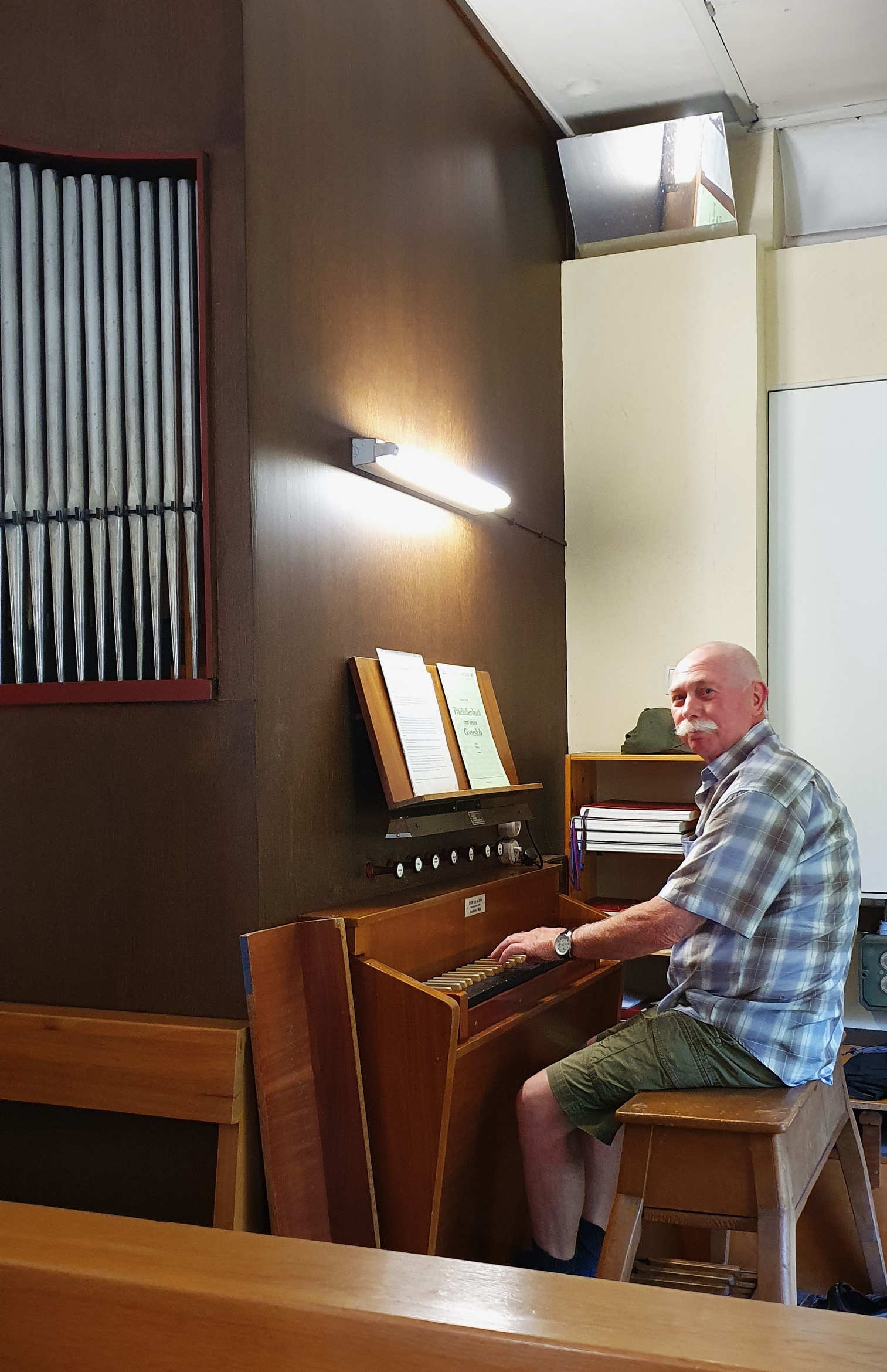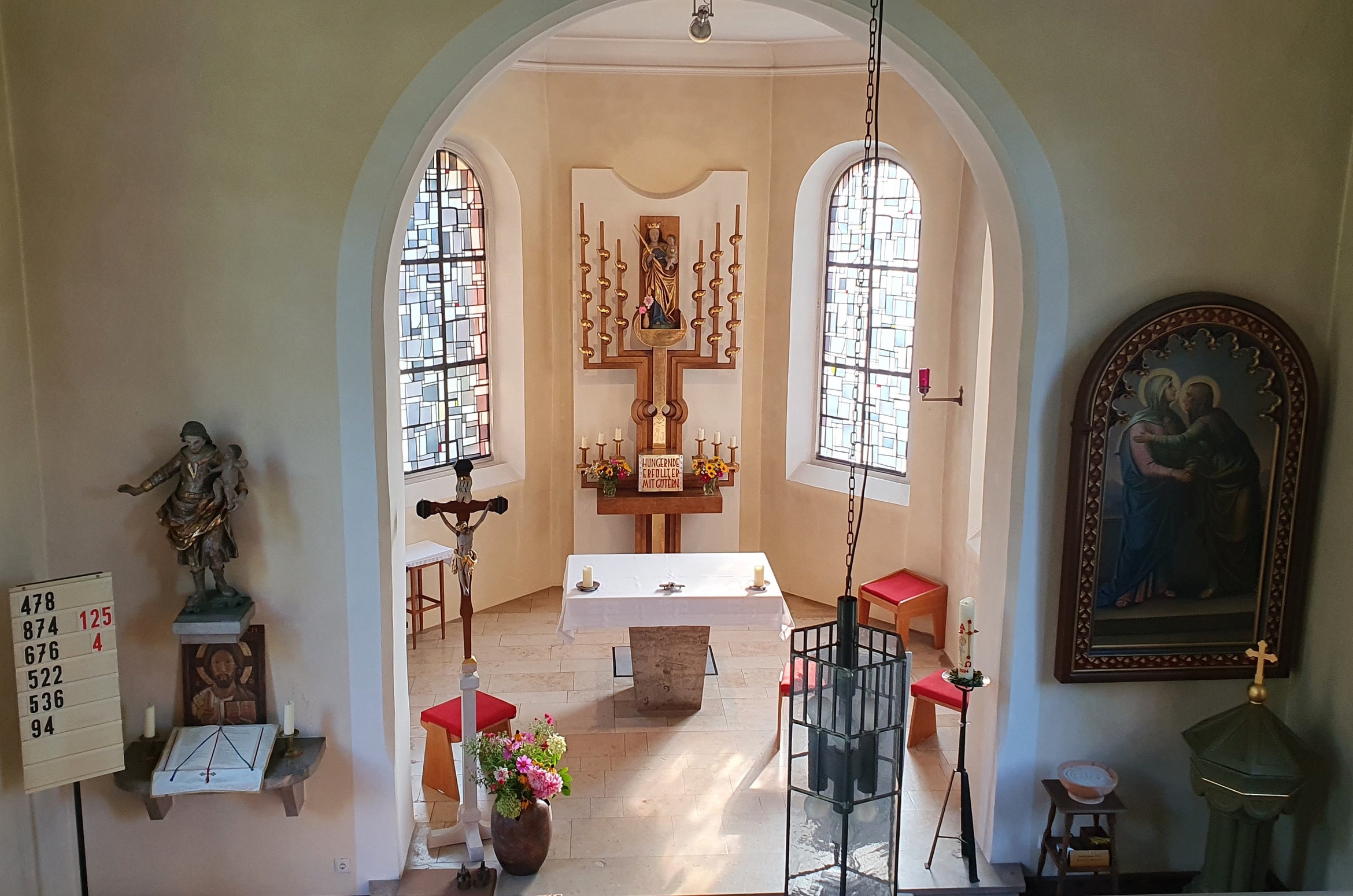 Über das kirchliche Leben in der kleinen Gemeinde berichtete im Anschluss Martin Dekant: Die Kirche ist täglich geöffnet und lädt zum Gebet und Verweilen ein. Am 2. Sonntag im Monat wird um 18:30 Uhr eine eucharistische Andacht gefeiert. Um „Mariä Geburt“ im September findet eine Marienmesse im Freien statt, musikalisch umrahmt von Musikanten der Oberen Rhön, mit anschließender Begegnung. Dazu ist die ganze Pfarreiengemeinschaft Fladungen-Nordheim eingeladen. Wertschätzende und anerkennende Worte fand Herr Dekant für den verstorbenen Küster Karl-Heinz Metz, der 60 Jahre lang zuverlässig und gewissenhaft seinen Dienst versehen und das „legendäre Ambo-Tuch mit den Heidelbeeren“ angeschafft hatte. Auch den Dienst des rundum beliebten Organisten Michael Friedrich hob er hervor, der hier, nach seinem Vater Manfred, in zweiter Generation die Orgel spielt und dessen Sohn Georg gleichfalls in seine Fußspuren getreten ist. Die kleine, gute Orgel ist ein Werk der Orgelbaufirma Hey aus Urspringen.