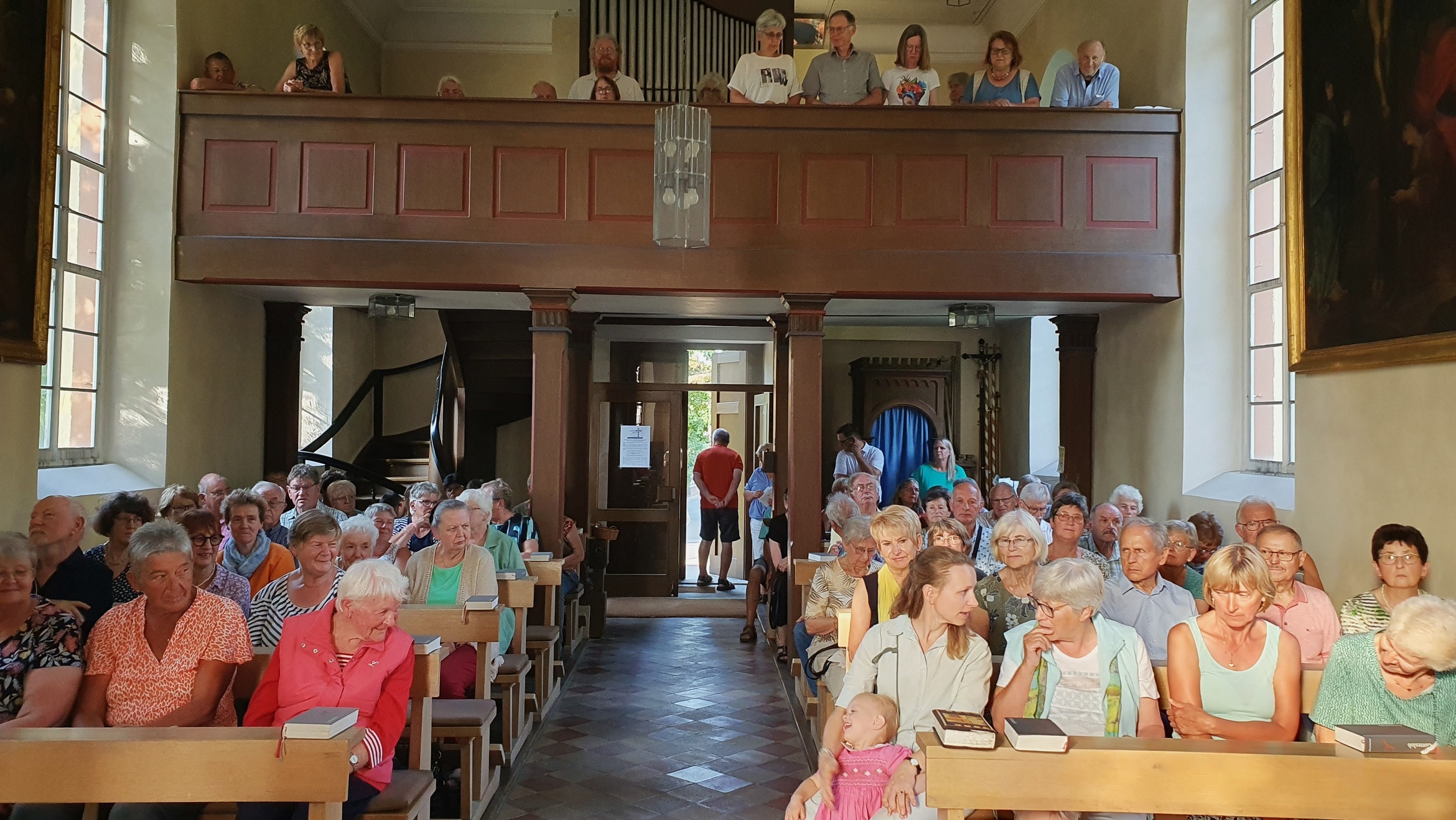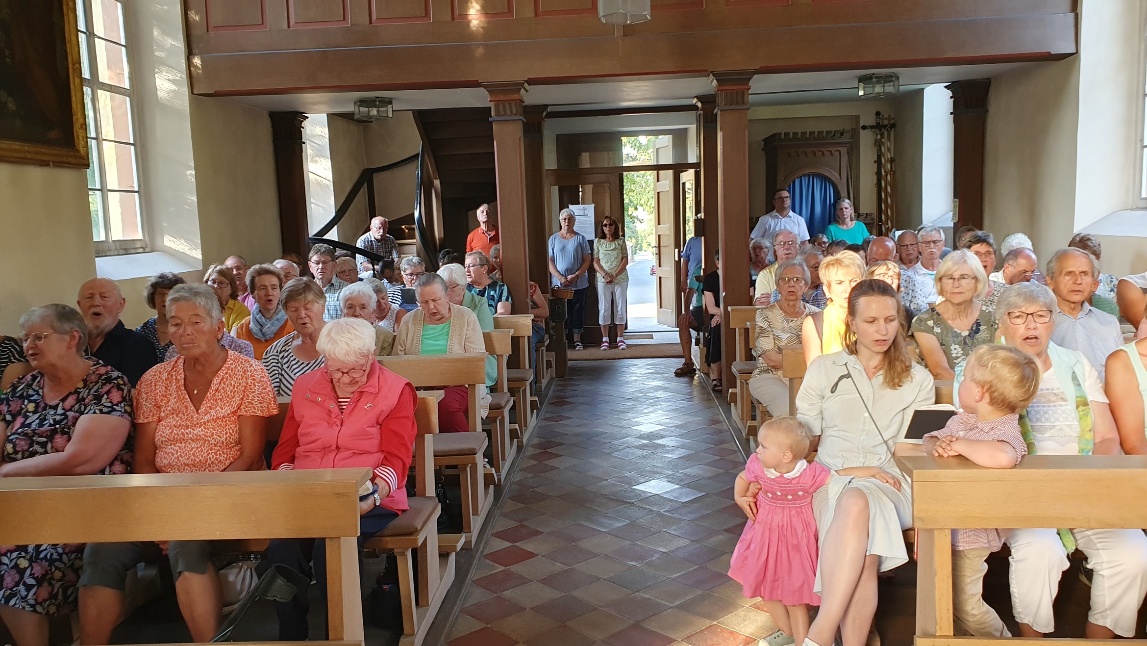 Schnell füllten sich die Plätze in der kleinen Dorfkirche mit interessierten, erwartungsfrohen Besuchern dieser Veranstaltungsreihe. Martin Dekant aus Gemeindeteam und Kirchenverwaltung, stellvertretender Kirchenverwaltungs-Vorstand Graf Alfred von Soden und seine Gattin, Kirchenrechnerin Gräfin Adelheid von Soden – beide ebenfalls Mitglieder des Gemeindeteams, führten durch die Vorstellung.