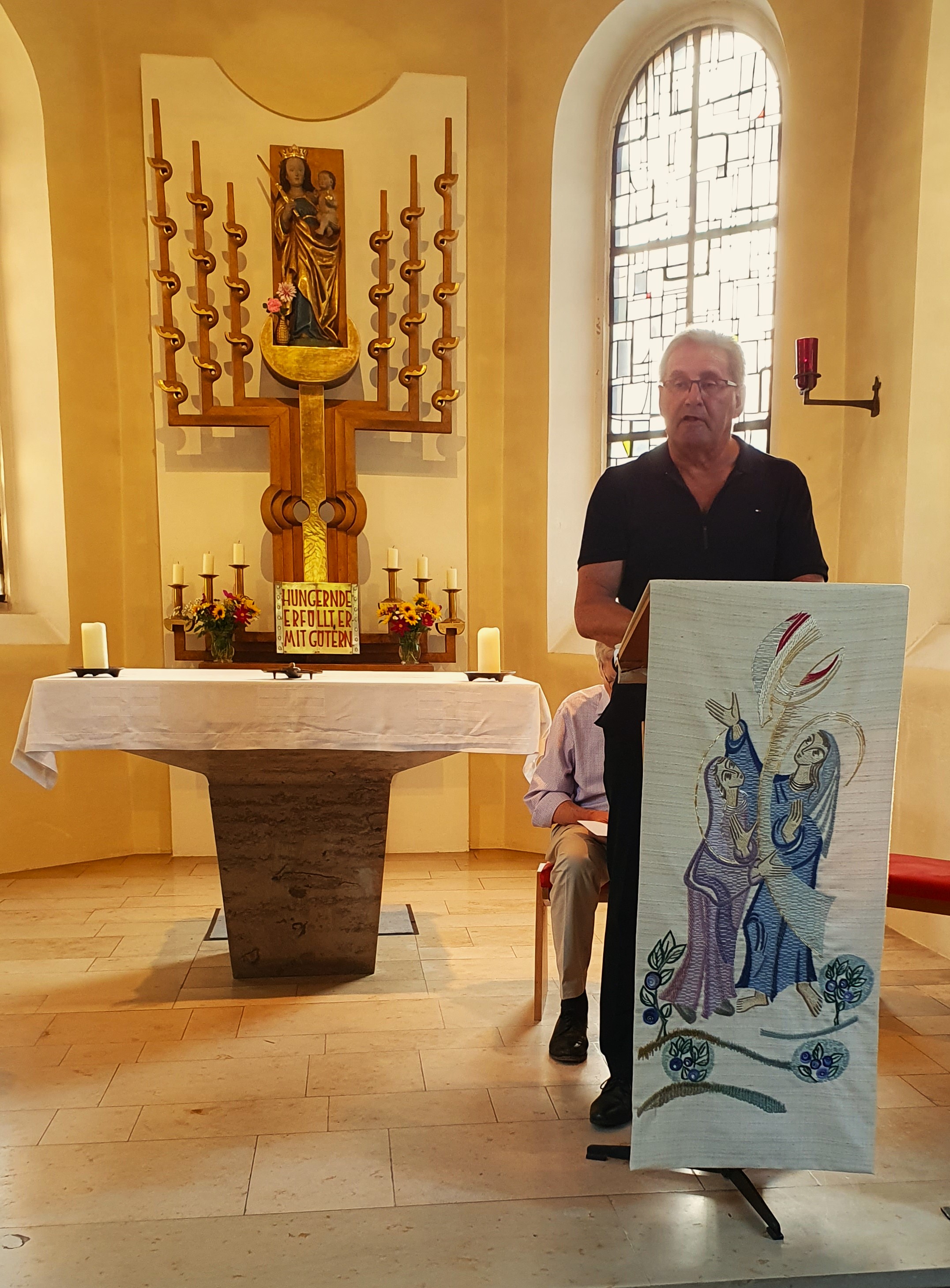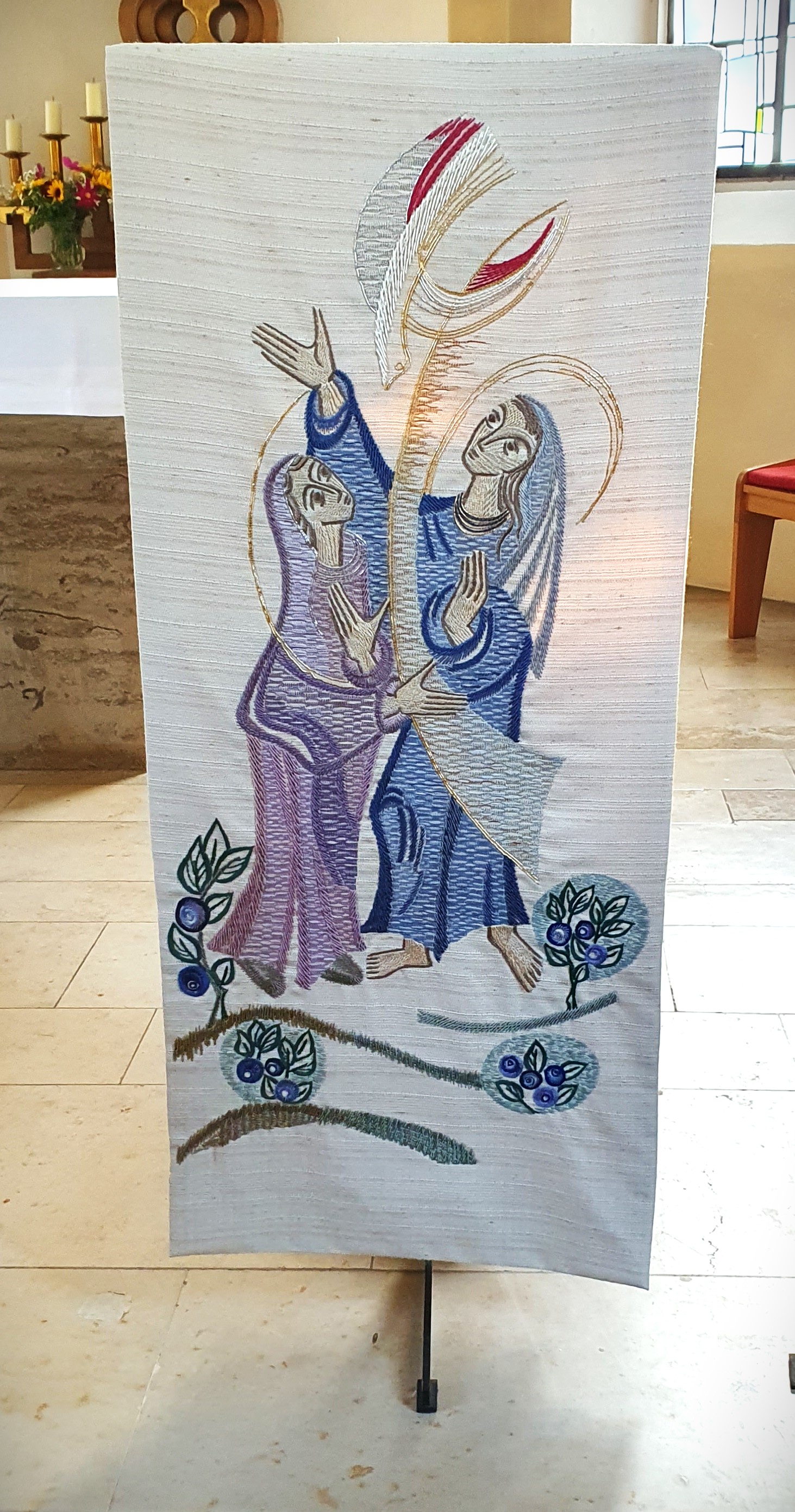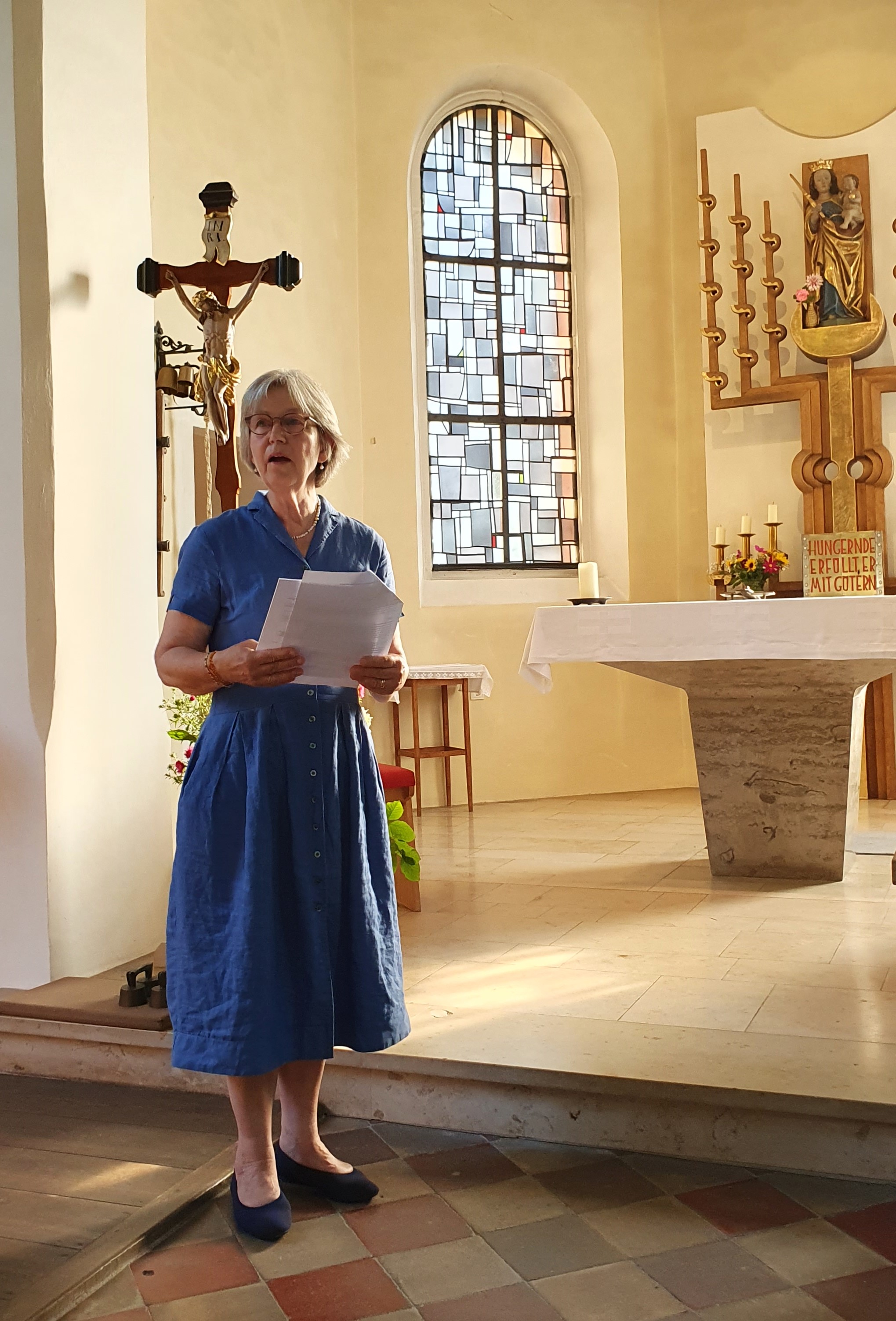 „Was bedeutet uns das, dass unsere Kirche eine Marienkirche ist?“ fragte Gräfin von Soden und ging kurz auf das Gemälde „Mariä Heimsuchung“ ein - auf die Begegnung von Maria und Elisabeth, beide in froher Erwartung, womit das Heilswirken Jesu das erste Mal offenbar wird. Voll Freude singt Maria das „Magnificat“. - Das taten dann auch die Gäste des Abends und sangen begeistert: „Groß sein lässt meine Seele den Herrn“.