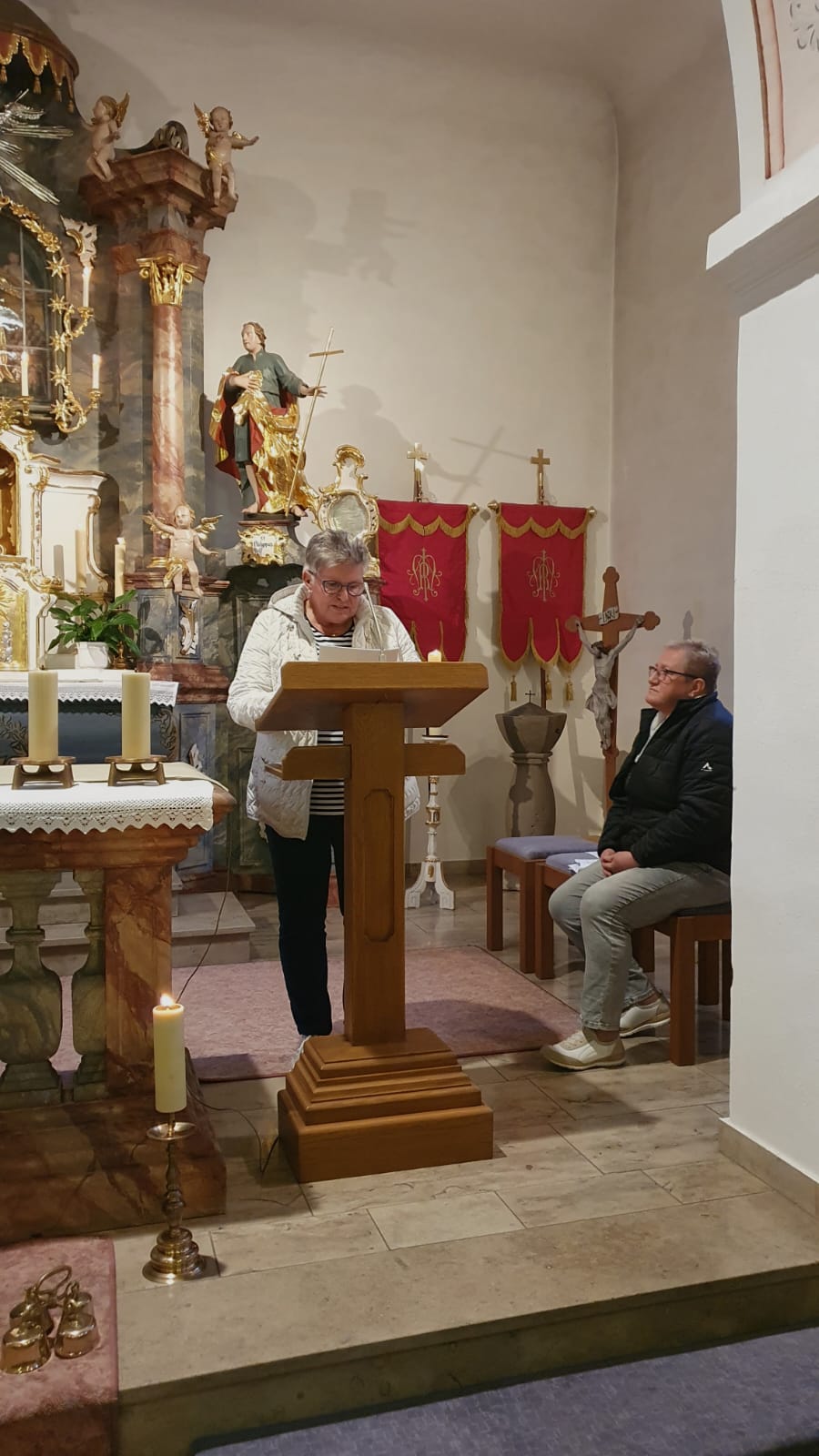 „Eigentlich ist schon viel gesagt über unser Dorf und unsere Kirche – aber nicht alles!“ begrüßte Kirchenpflegerin Reinhilde Pfister nach diesem Audio-Beitrag die Gäste und hieß sie in der St.-Ulrich-Kirche in Braidbach, im Volksmund auch „Bräbbich“ genannt, herzlich willkommen.